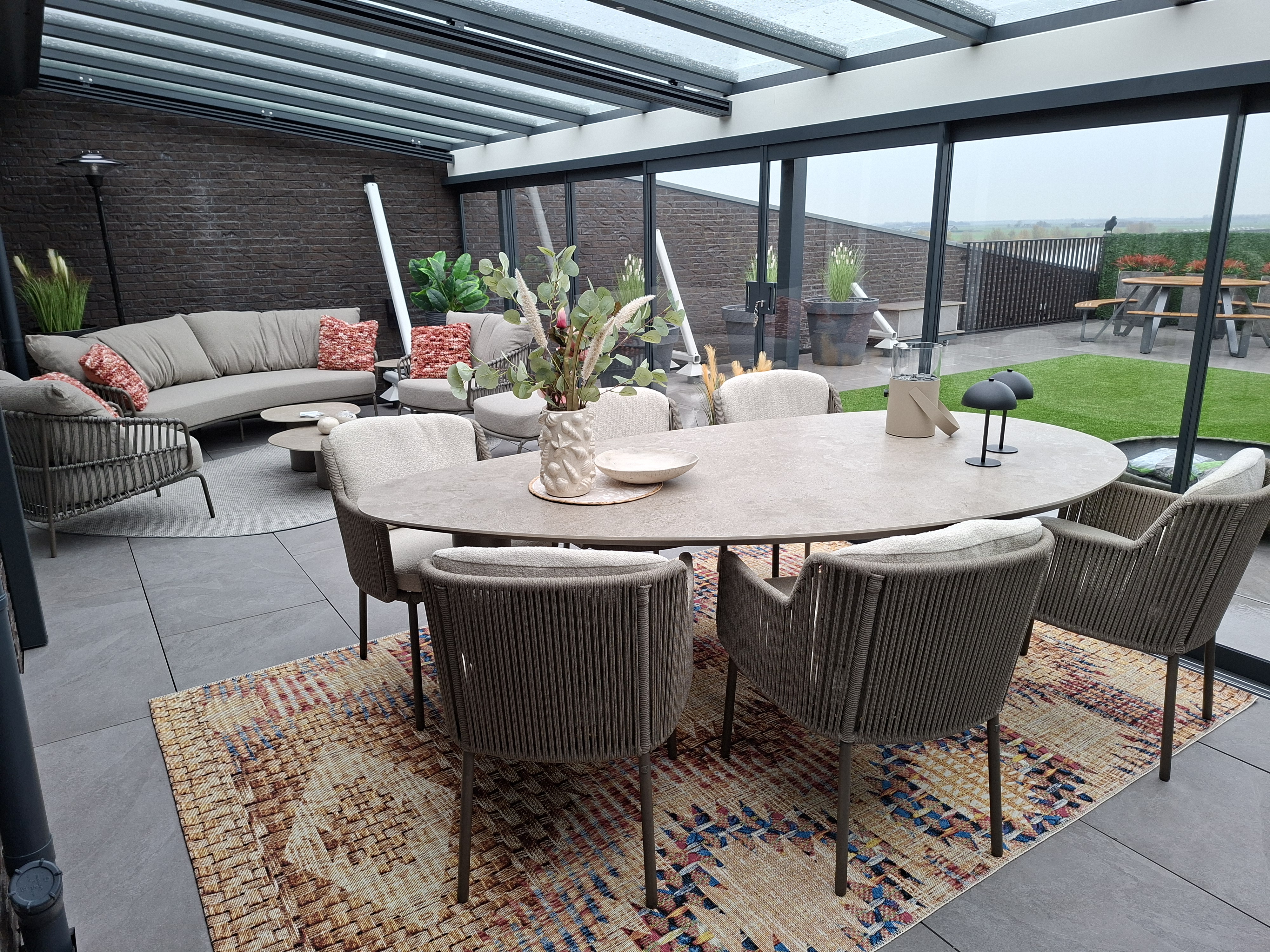 Rope (touw) is een prachtig zacht materiaal met een hippe uitstraling en weerbestendige eigenschappen. Het materiaal vergt weinig onderhoud, mocht je het rope schoon willen maken dan adviseren wij om de Wicker en textileen cleaner van 4-Seasons te gebruiken.