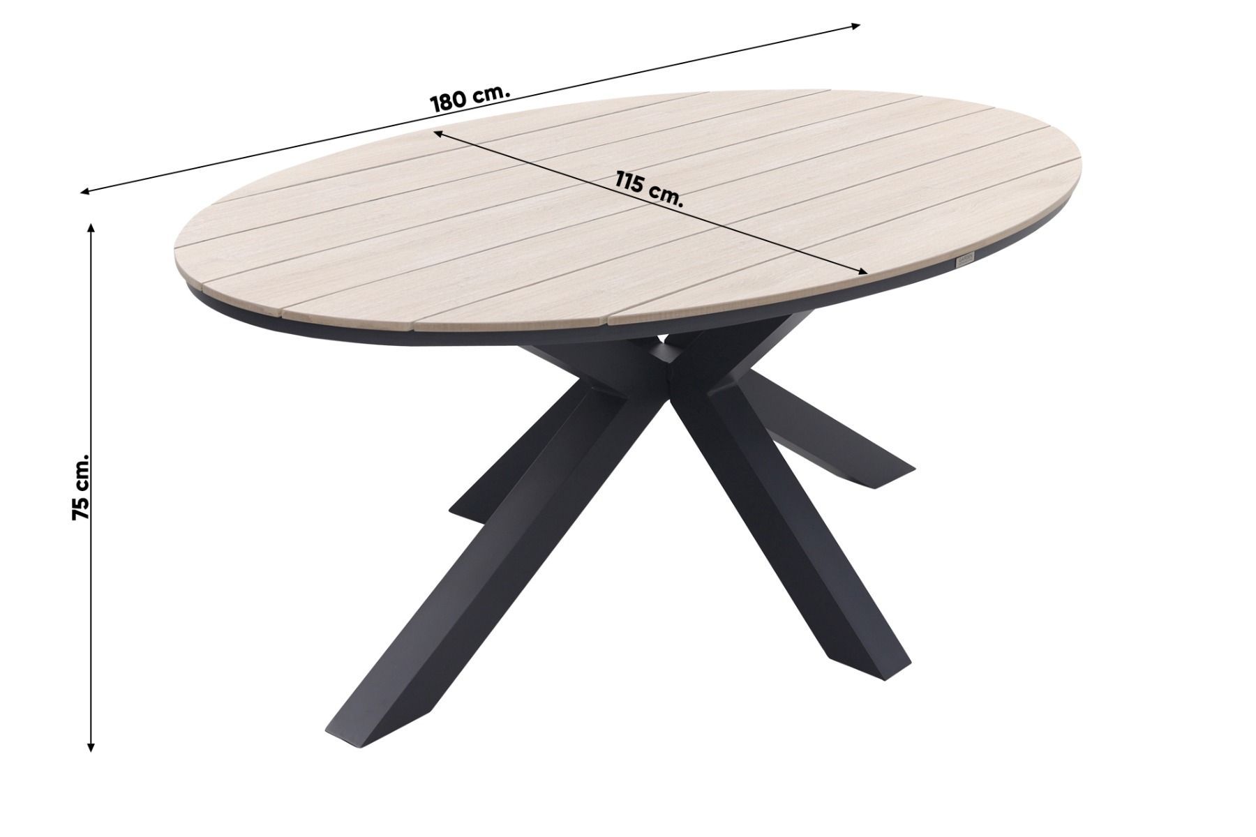 Eigenschappen Garden Impressions Edison ovale tuintafel polywood 180x115 cm.