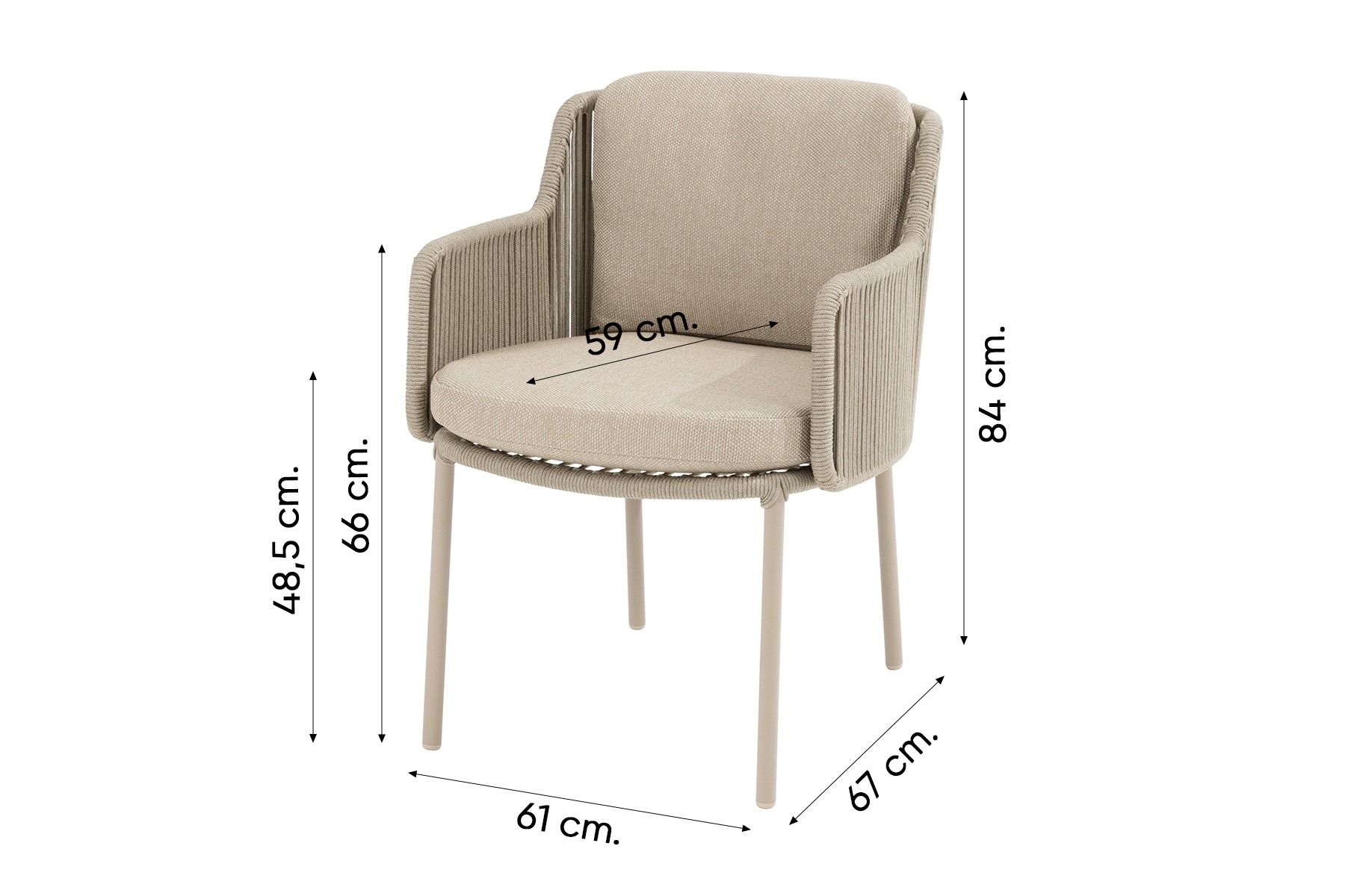 Rope (touw) is een prachtig zacht materiaal met een hippe uitstraling en weerbestendige eigenschappen. Het materiaal vergt weinig onderhoud, mocht je het rope schoon willen maken dan adviseren wij om de Wicker en textileen cleaner van 4-Seasons te gebruiken.