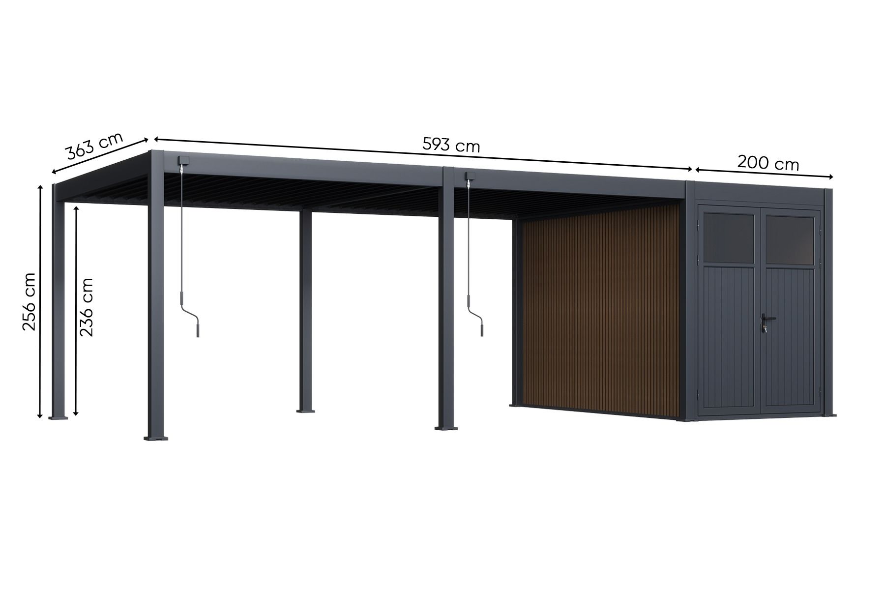 Advance lamellen overkapping 3,6x6 m. incl. berging 3,6x2 m. Aluminium - Antraciet