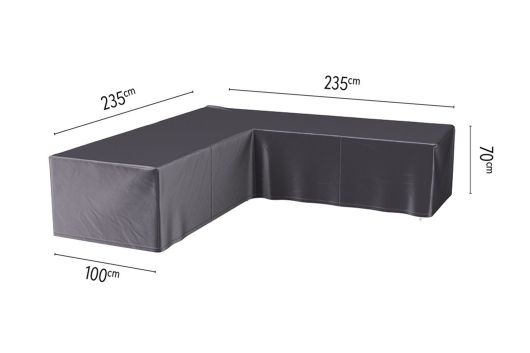Geniet nog langer van uw loungeset dankzij de uitstekende bescherming van de AeroCover loungesethoes. Deze l-vormige loungesethoes beschermt uw loungeset tegen alle weersinvloeden. Met het rijgkoord bevestigd u de hoes stevig om de loungeset. De hoes is 235 cm. lang en 235 cm. breed. De diepte van de loungeset hoes is 100 cm. en de hoogte is 70 cm.
