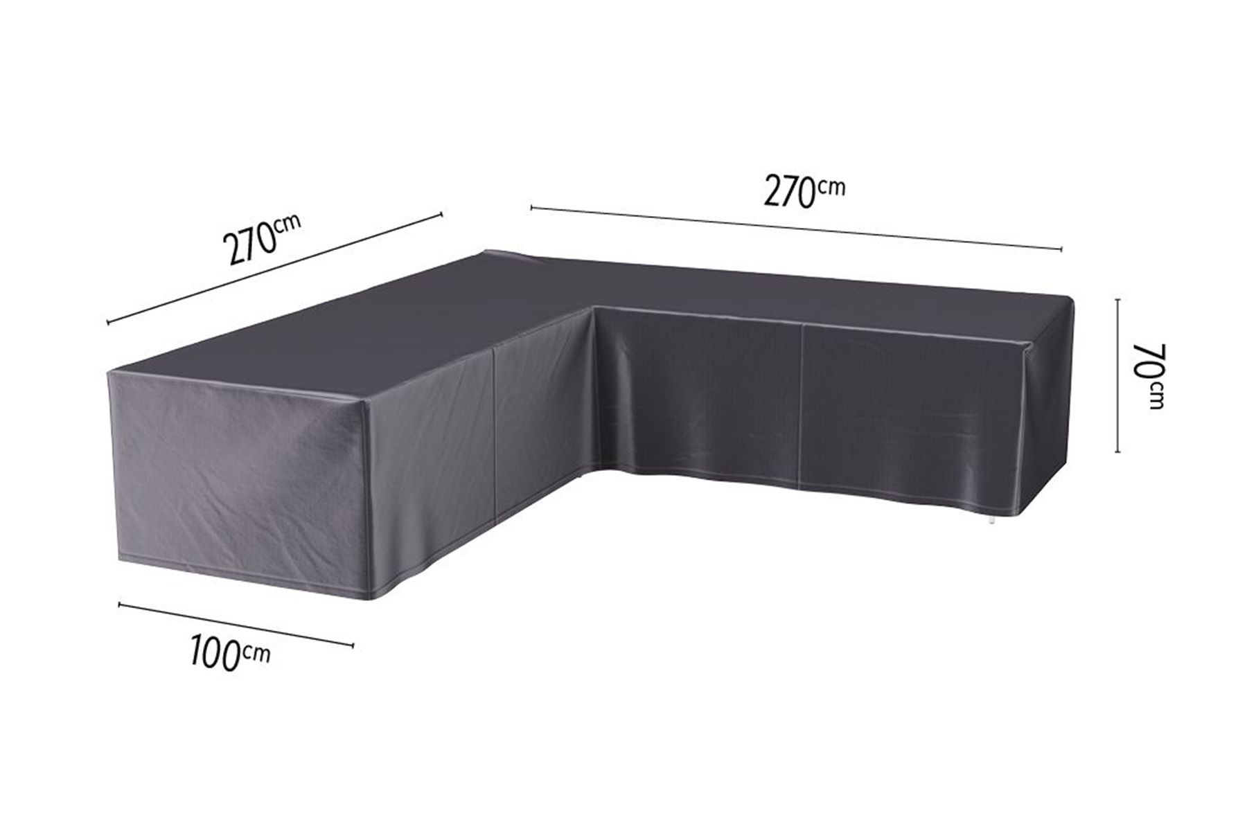 Geniet nog langer van uw loungeset dankzij de uitstekende bescherming van de AeroCover loungesethoes. Deze l-vormige loungesethoes beschermt uw loungeset tegen alle weersinvloeden. Met het rijgkoord bevestigd u de hoes stevig om uw loungeset. De hoes is 270 cm. lang en 270 cm. breed. De diepte van de loungeset hoes is 100 cm. en de hoogte is 70 cm.