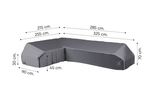 De afmetingen van de hoes zijn 325x255x90x30/45/70 cm - Links