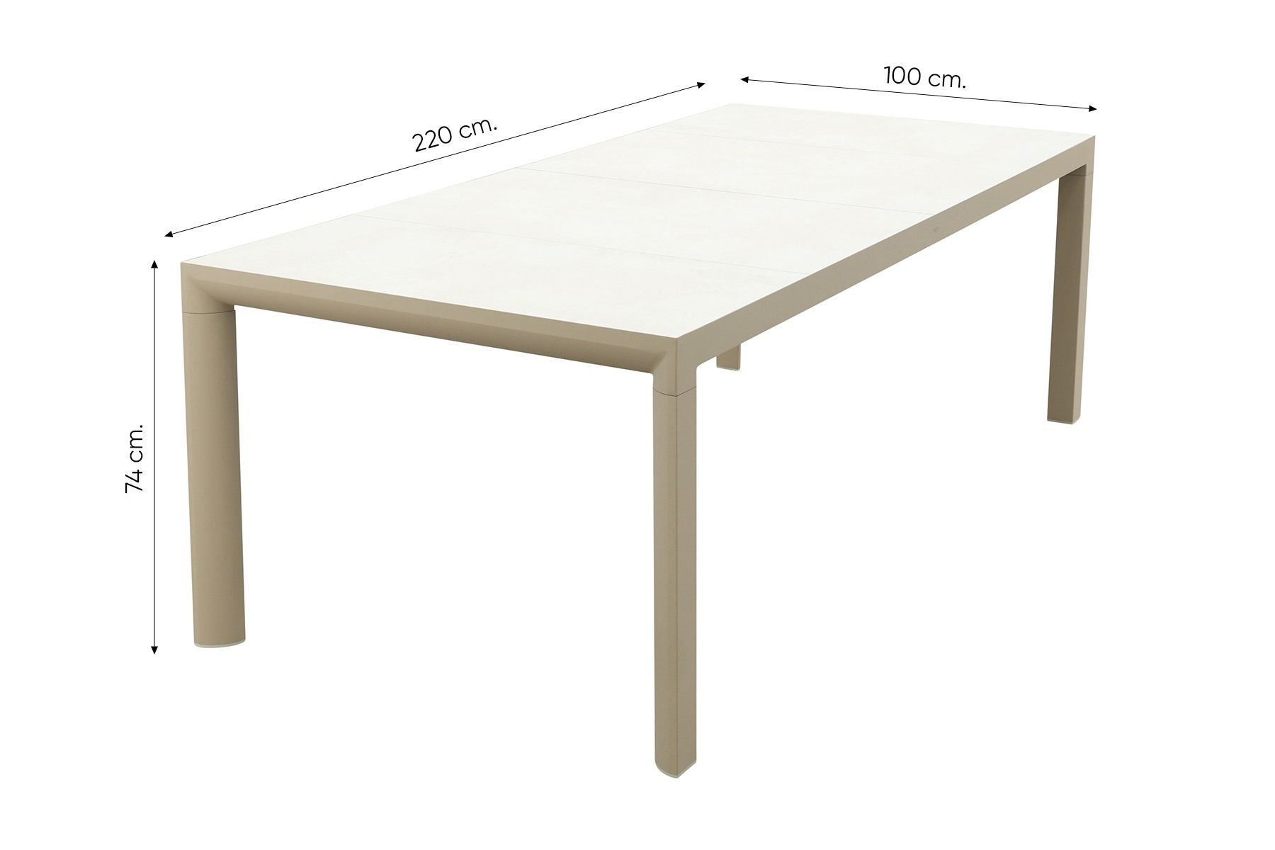 Atmos/Kings aluminium tuinset voor 6 personen 220x100 cm. - Latte