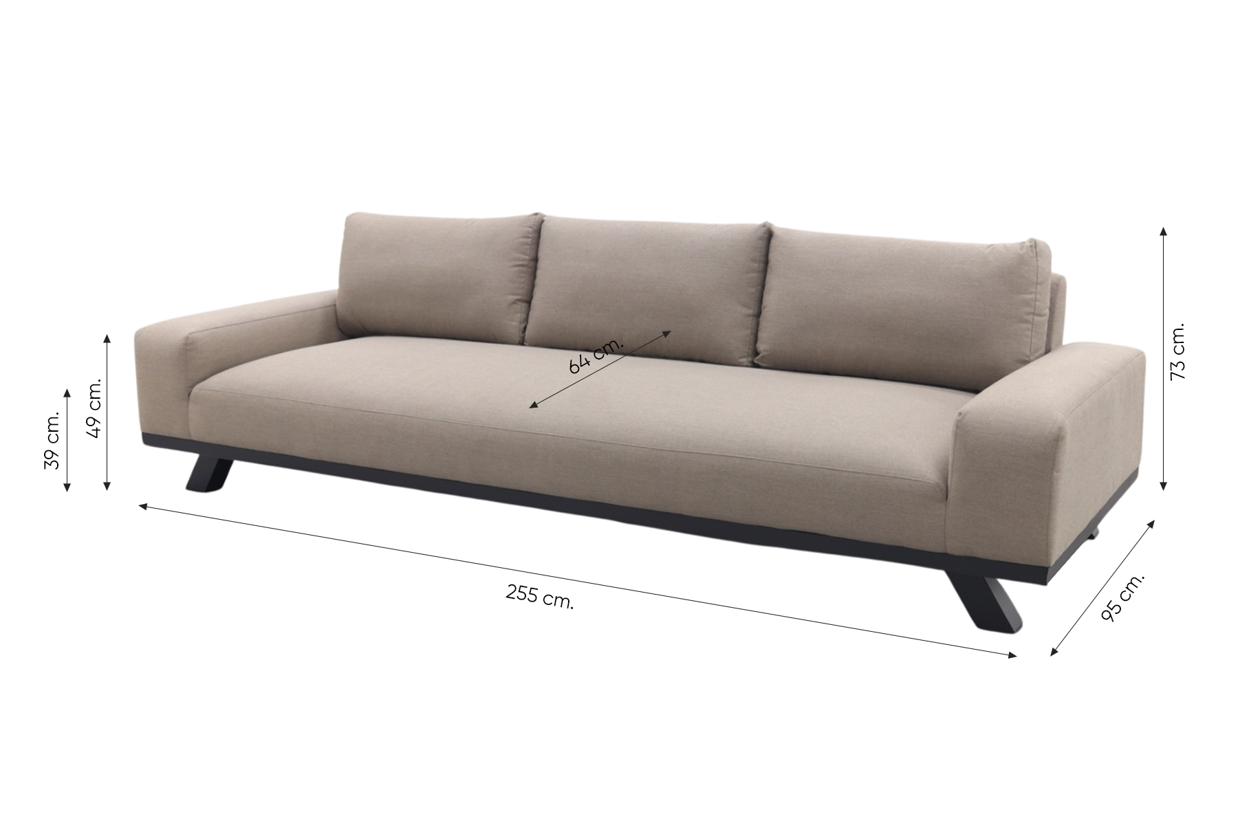 De Barcelona loungeset heeft een stevig aluminium frame welke afgewerkt is met een antraciet kleurige coating. Aluminium heeft als voordeel dat het niet kan verroesten en weinig onderhoud nodig heeft. Daarnaast is het ook nog eens licht van gewicht. Om dit frame is de weerbestendige Sunbrella stof bevestigd. Deze stof is water- en vuilafstotend en eenvoudig schoon te maken met water en eventueel een sopje.