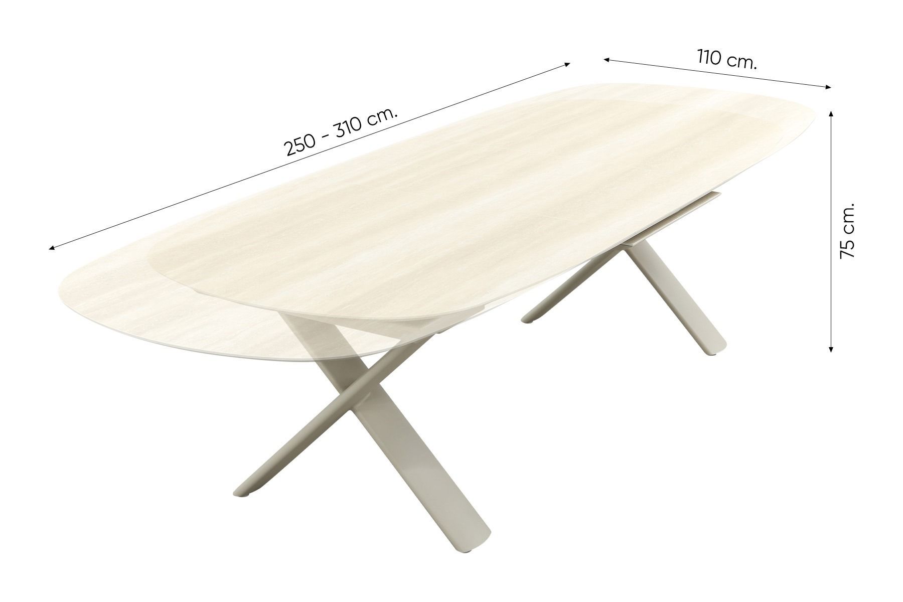 - Deens ovale uitschuifbare tafel van 250 tot 310 cm