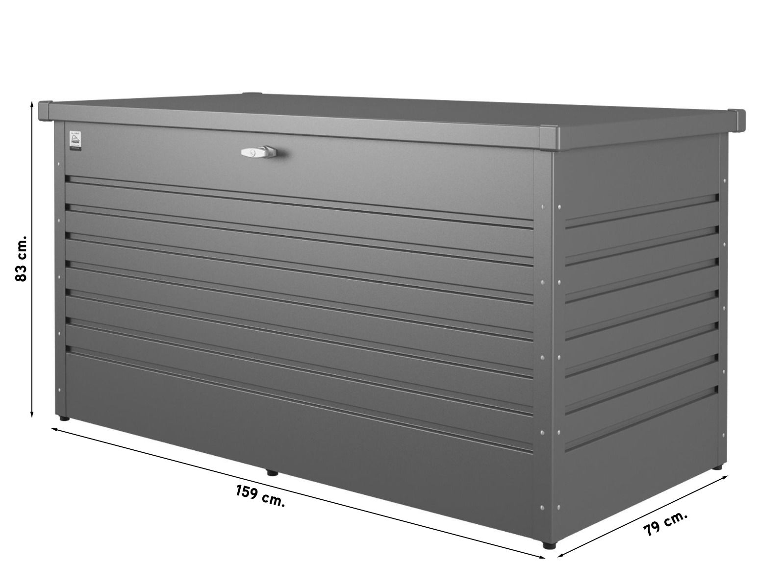 De Biohort hobbybox - kussenkist heeft een breedte van 159 cm, een diepte van 79 cm. en een hoogte van 83 cm. De Biohort hobbybox is regenwaterdicht en heeft een onzichtbare, geïntegreerde doorluchting. Alle schroeven en scharnieren zijn van roestvrij staal. Bij de Biohort hobbybox is er alleen maar gekozen voor kwalitatief hoogwaardige materialen. Daarom wordt er ook 20 jaar garantie op gegeven. Met deze opbergbox geniet u van een opgeruimde tuin.