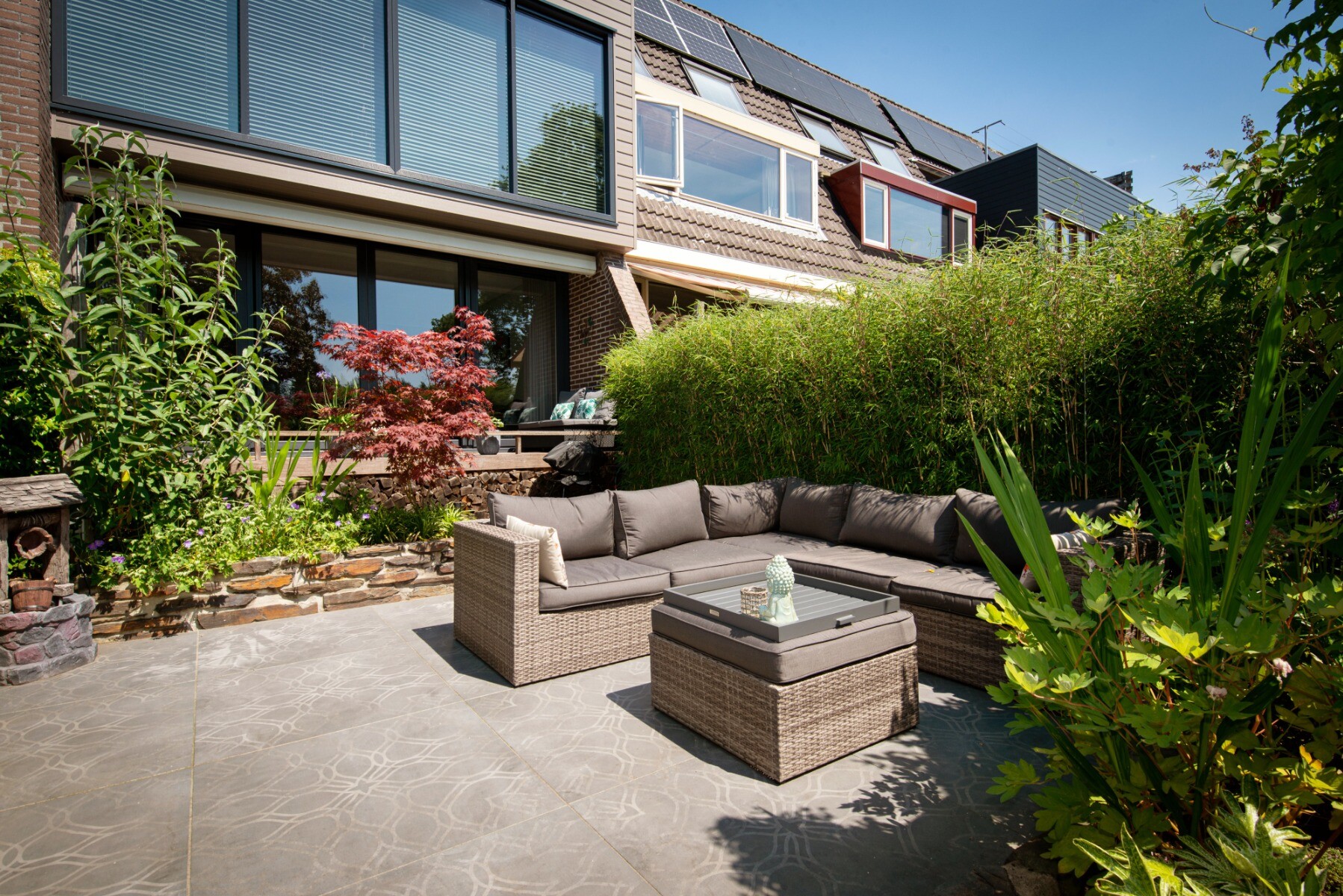 Een strakke mediterrane tuin combineert moderne elementen met de warme, authentieke sfeer van Zuid-Europa. Een manier om deze authentieke sfeer te creëren is door muurtjes met oude stenen te gebruiken. Kies voor tegels met een print die aansluit bij de mediterrane stijl, maar houd het ontwerp strak en eigentijds. Wicker meubelen passen perfect bij de mediterrane stijl en voegen een natuurlijke, warme touch toe aan je buitenruimte. Voor extra sfeer kun je kleurrijke sierkussens toevoegen aan de loungeset. Wilde planten maken de strakke mediterrane tuin helemaal af.
