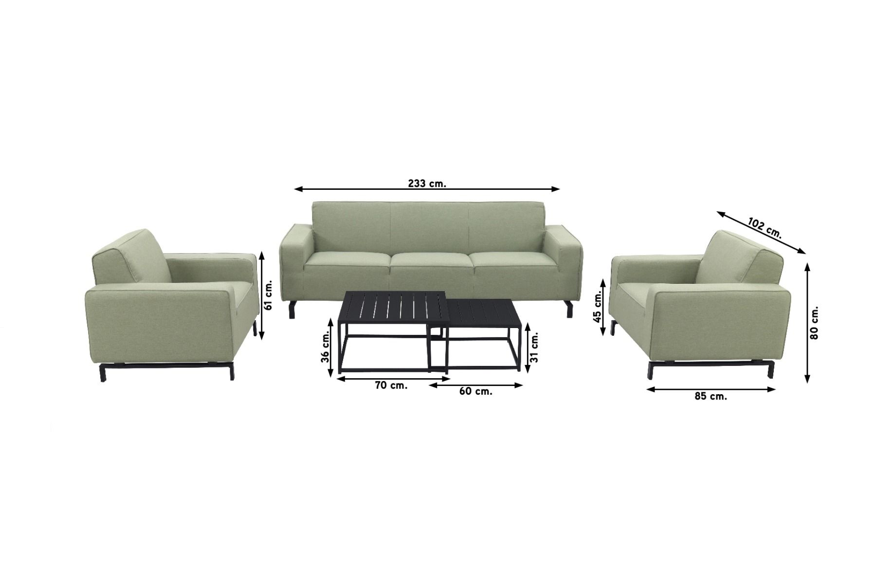 Ontdek de perfecte loungeset voor zowel binnen als buiten: de Boavista serie! Deze set bestaat uit 2 comfortabele loungestoelen, een ruime 3-zits loungebank en 2 mooie loungetafels. De stoelen en bank hebben een stevig frame van aluminium, dat niet gaat roesten en geen onderhoud vereist. De Sunbrella stof die erop zit, is zacht en geschikt voor alle weersomstandigheden. Dankzij de goed gevulde zittingen kun je heerlijk comfortabel zitten in deze stoelen en bank. De loungetafels zijn gemaakt van lichtgewicht aluminium en hebben een beschermende coating tegen krassen. Ze zijn gemakkelijk te verplaatsen, zodat iedereen zijn drankje binnen handbereik heeft. Met de Boavista loungeset geniet je van luxe en comfort in je eigen tuin! Bestellen kan direct online! Liever eerst even proefzitten? Kom dan langs in onze showroom in Opheusden, Duiven of Apeldoorn. Je bent van harte welkom!
