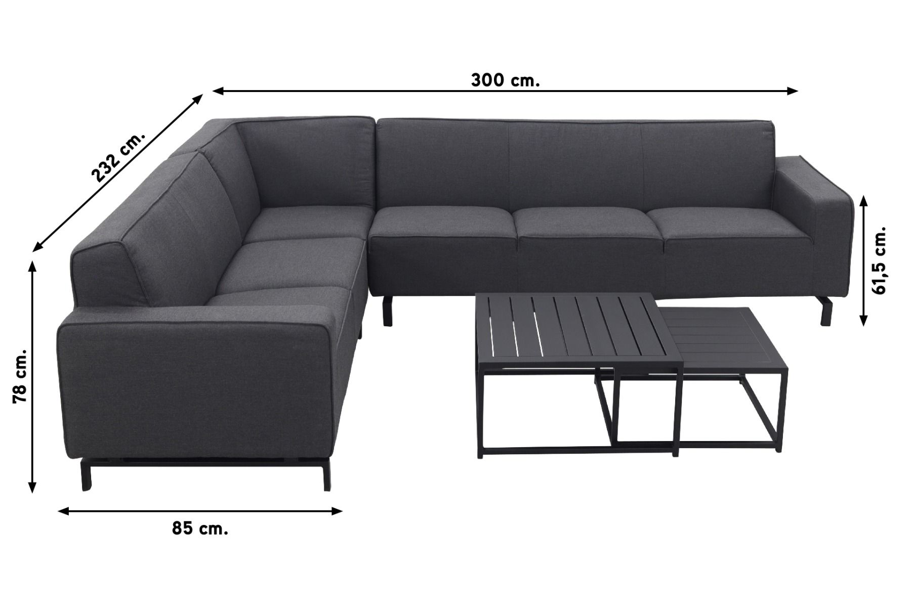De Boavista loungebank wordt gekenmerkt door de vele verschillende mogelijkheden. Deze bank heeft namelijk verschillende losse delen die naar eigen wens aan elkaar gekoppeld kunnen worden. Mocht je een combinatie willen die je nog niet hebt gezien, kan je natuurlijk altijd contact met ons opnemen! Deze loungebank wordt gesierd door een stevig aluminium onderstel. Een materiaal dat perfect is voor tuinmeubelen omdat het niet gaat roesten en geen onderhoud nodig heeft. Over het aluminium frame is Sunbrella stof aangebracht. Deze stof is van all weather kwaliteit en zorgt ervoor dat jouw loungebank heerlijk zacht is! Door de goed gevulde zitting ben je verzekerd van goed zitcomfort, een eigenschap die erg belangrijk is voor jouw loungebank.Â
