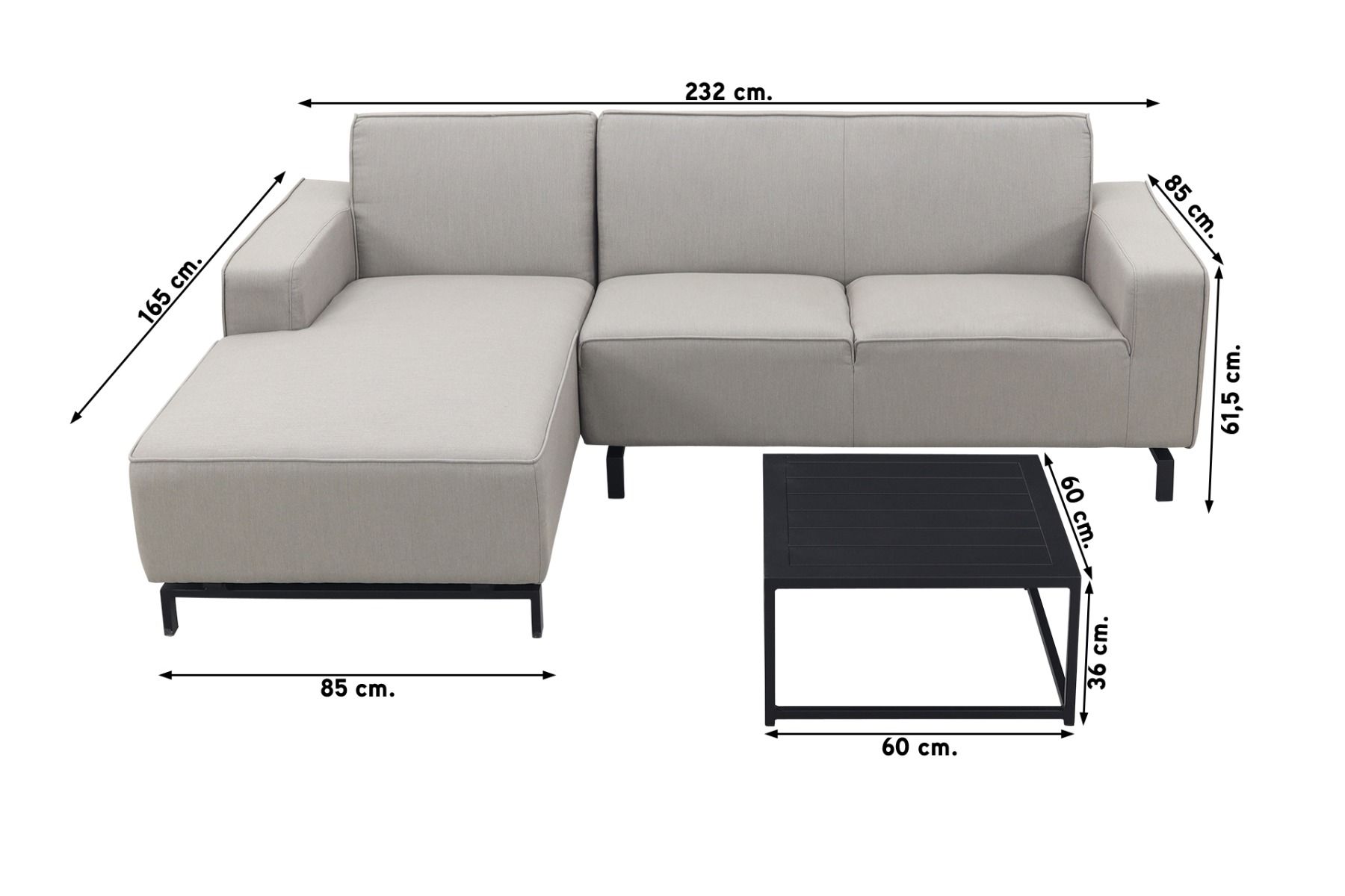 Ervaar de ultieme ontspanning in je eigen tuin met onze exclusieve Boavista/Toronto loungeset. Gemaakt van all weather stof, is deze set perfect voor alle seizoenen. Geniet van de prachtige grijze kleur van de Boavista hoekbank met chaise longue. Dankzij de duurzame Sunbrella stof kan je het hele jaar door zorgeloos genieten van deze loungeset, ongeacht de weersomstandigheden. Onze Toronto loungetafel heeft een strak zwart design en biedt genoeg ruimte voor jouw favoriete drankjes en snacks. Creëer een gezellige sfeer en ontspan in stijl met deze prachtige loungeset. Bestel nu en geniet binnenkort van jouw eigen oase van rust! Wil je deze loungeset liever eerst uitproberen voordat je besluit te kopen? Geen probleem! Breng een bezoek aan onze showrooms in Opheusden, Duiven of Apeldoorn en test onze loungeset zelf uit. Je bent van harte welkom!
