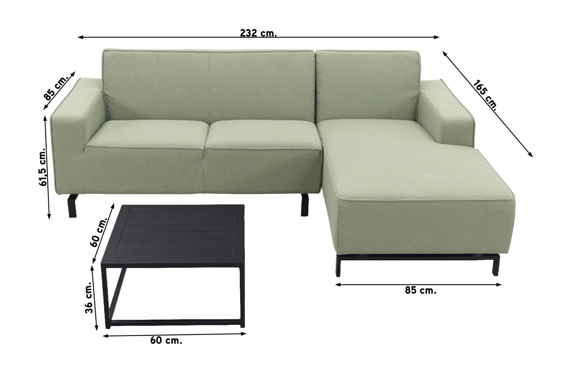 Geniet van een luxueuze buitenruimte met deze groene Boavista loungebank en zwarte Toronto bijzettafel. De set biedt comfortabele zitplaatsen voor drie personen en heeft een chaise lounge om te ontspannen. De bijzettafel is gemaakt van duurzaam aluminium en de loungebank is gemaakt van all-weather Sunbrella-stof. Bestand tegen vlekken, vuil en schimmel, deze set is eenvoudig te onderhouden en schoon te maken. Creëer een stijlvolle en ontspannende buitenruimte en bestel deze loungeset nu! Liever eerst even proefzitten? Kom dan langs in onze showroom in Opheusden, Duiven of Apeldoorn. Je bent van harte welkom!
