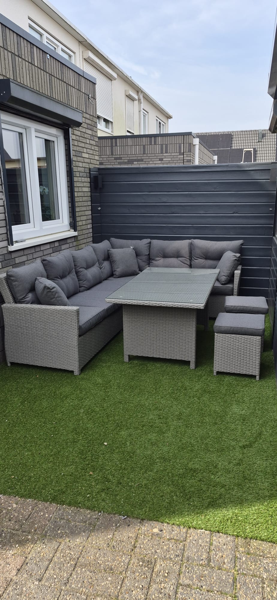 Wij zijn ontzettend tevreden met deze loungeset. Hij is van mooie kwaliteit, stevige en lekker dikke kussens. Het monteren was zo gepiept. Een echte aanrader.