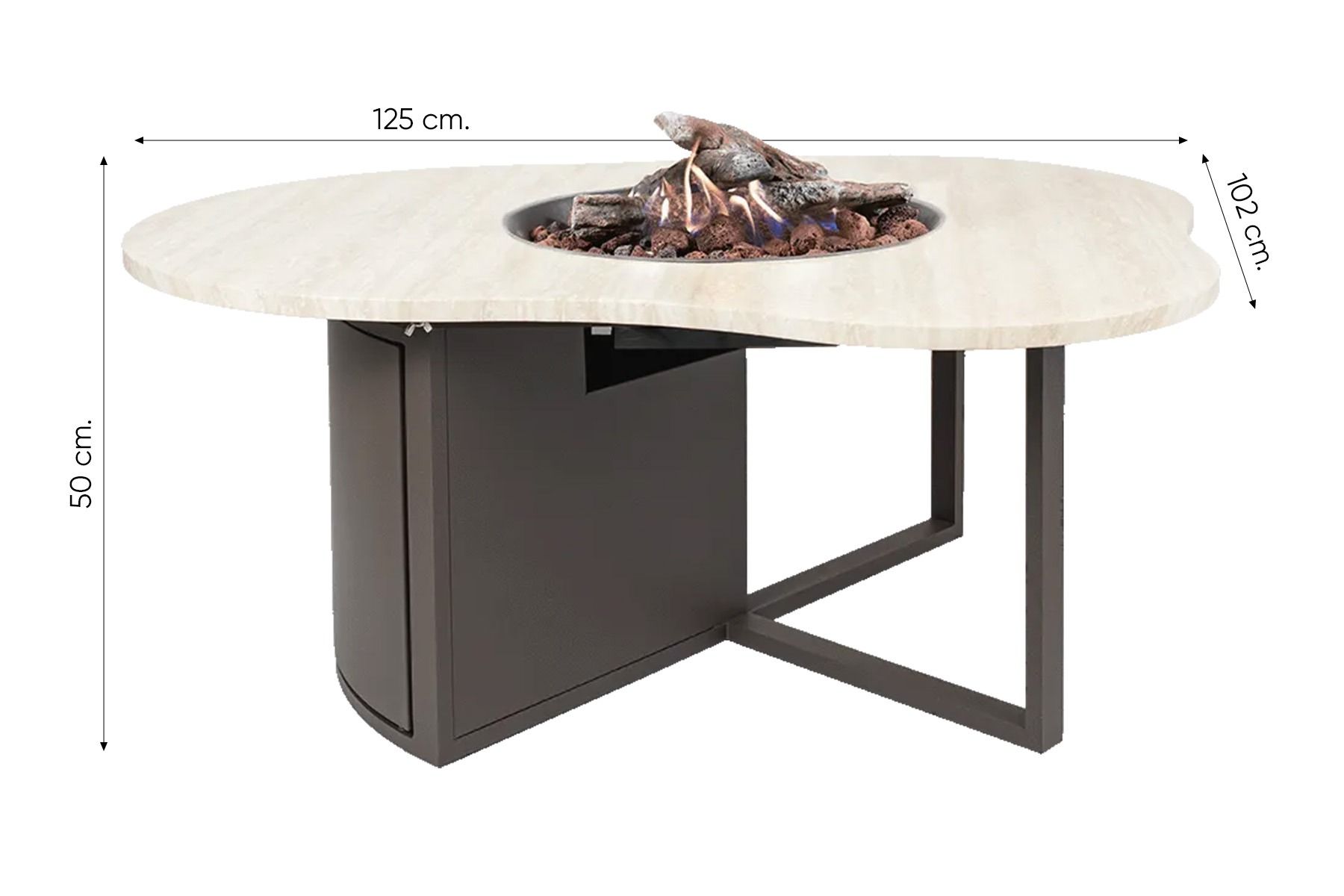 Een avond buiten wordt pas echt sfeervol met de Cosiloft Novi vuurtafel. Het ronde, organisch gevormde tafelblad met marmerlook geeft een zachte, natuurlijke uitstraling die perfect samengaat met het warme espresso bruine frame. De vlammen dansen sfeervol in het midden van de tafel, wat deze vuurtafel tot het middelpunt maakt van elke tuin of overkapping. Ideaal voor lange avonden met vrienden of gewoon om even te ontspannen met een warme plaid en een goed glas wijn. Shop eenvoudig online of bekijk in een van onze showrooms!
