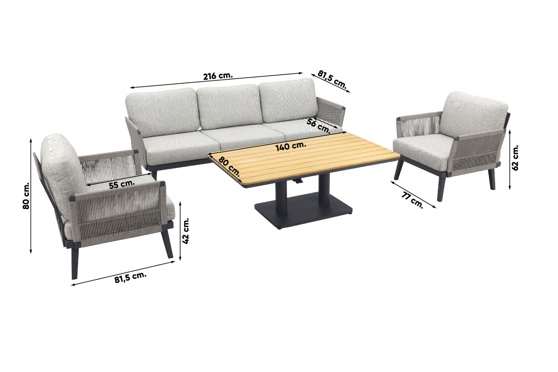 Durban/Medina stoel-bank loungeset met verstelbare tuintafel