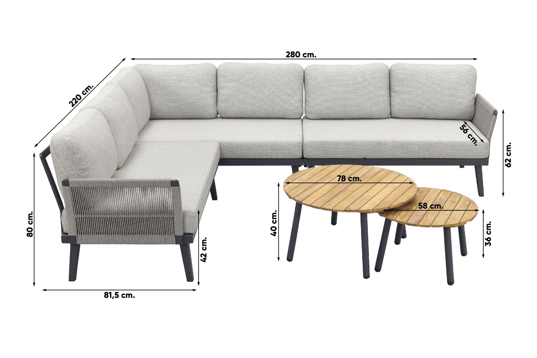Durban/mindo loungeset - hoekbank - 3-delig - Op=Op