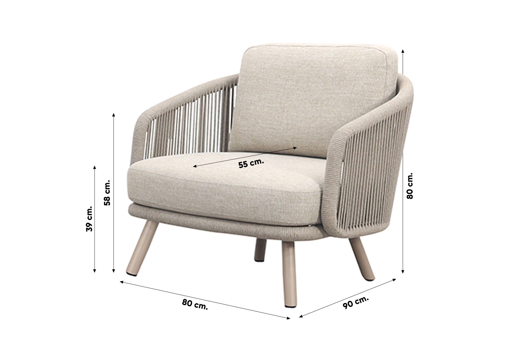 Rope (touw) is een prachtig zacht materiaal met een hippe uitstraling en weerbestendige eigenschappen. Het materiaal vergt weinig onderhoud, mocht je het rope schoon willen maken dan adviseren wij om de Wicker en textileen cleaner van 4-Seasons te gebruiken.