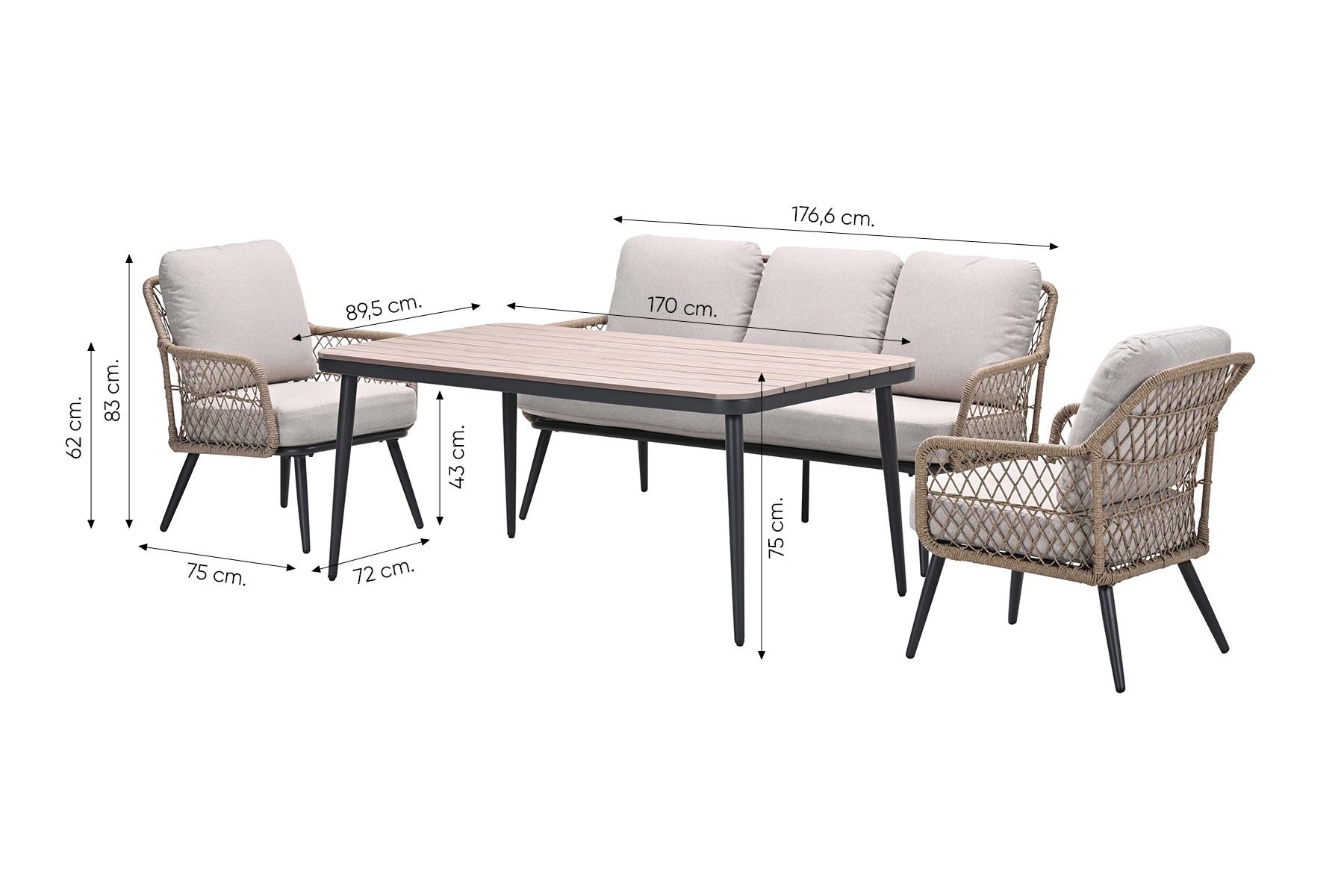 Rope (touw) is een prachtig zacht materiaal met een hippe uitstraling en weerbestendige eigenschappen. Het materiaal vergt weinig onderhoud, mocht je het rope schoon willen maken dan adviseren wij om de Wicker en textileen cleaner van 4-Seasons te gebruiken.