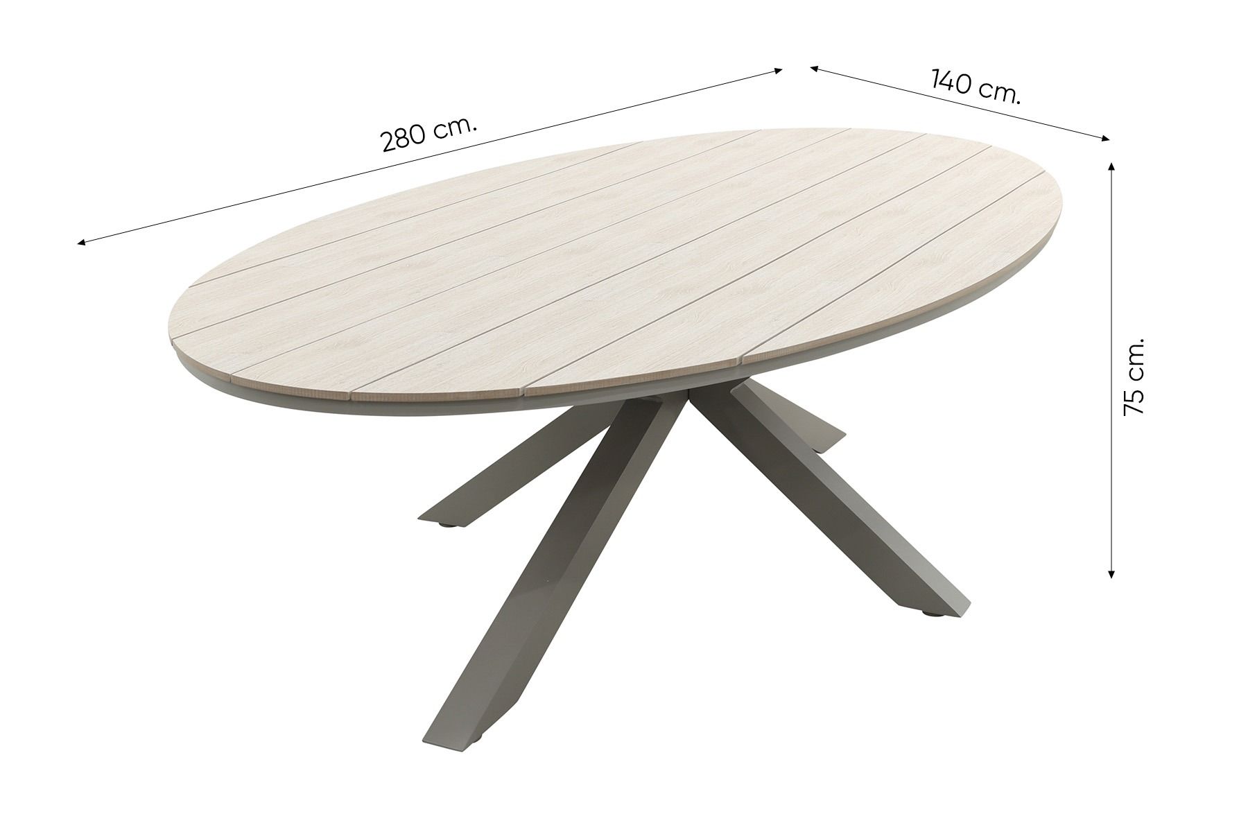 GI Edison ovale houtlook tuintafel 280x140 cm. - Taupe