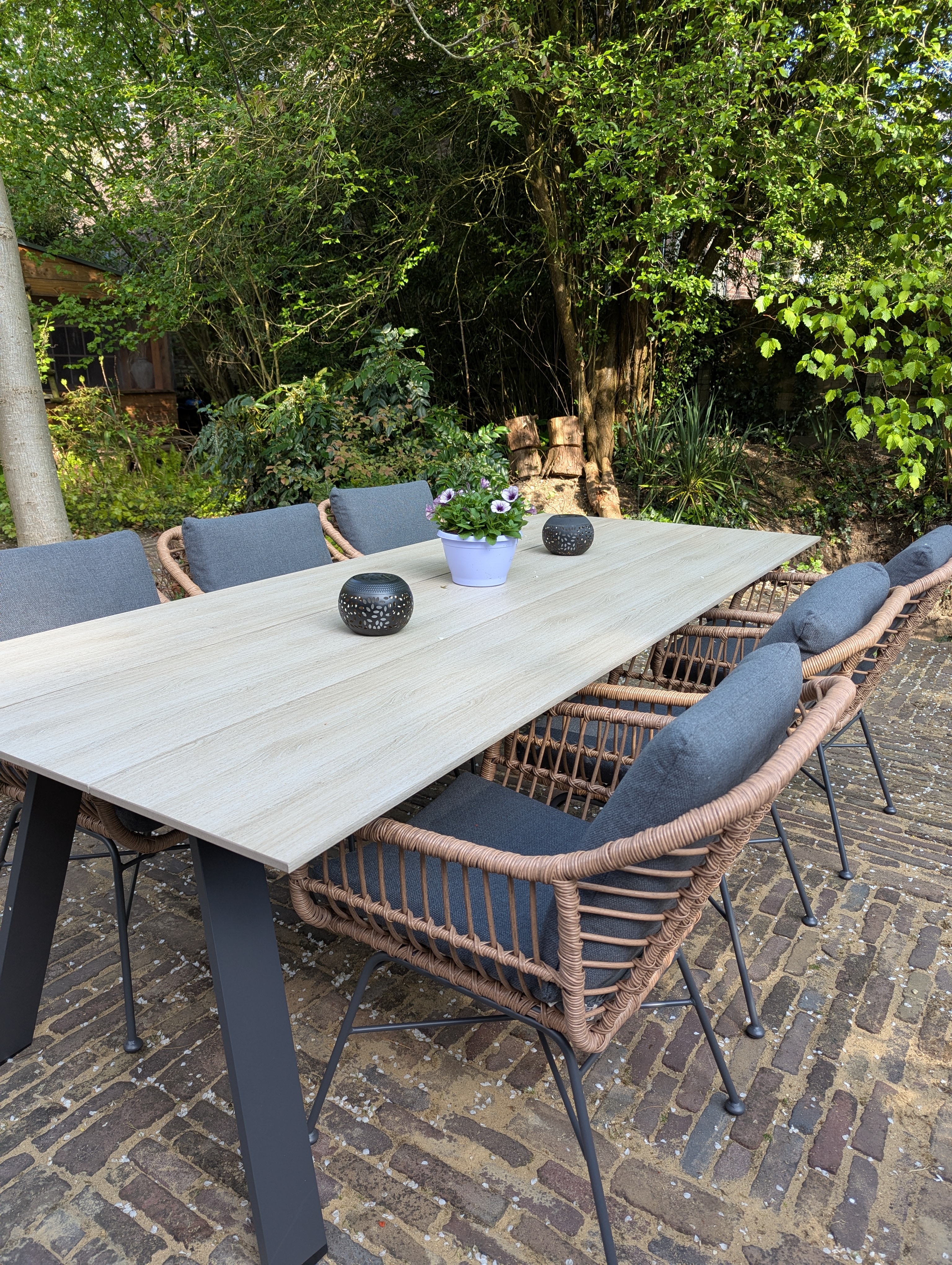 4 / 5Geweldig mooie setWij hebben deze set aangeschaft en hij stond binnen 3 weken te schijnen in onze tuin. Inmiddels hebben we hem al meerdere weken in gebruik en zijn er super blij mee. De stoelen zitten heerlijk en het is makkelijk schoon te houden. Een echte aanrader. De service bij vander Garderen en de hulp in de winkel was ook top!0 lezer(s) vonden deze review behulpzaamVind je deze review behulpzaam?