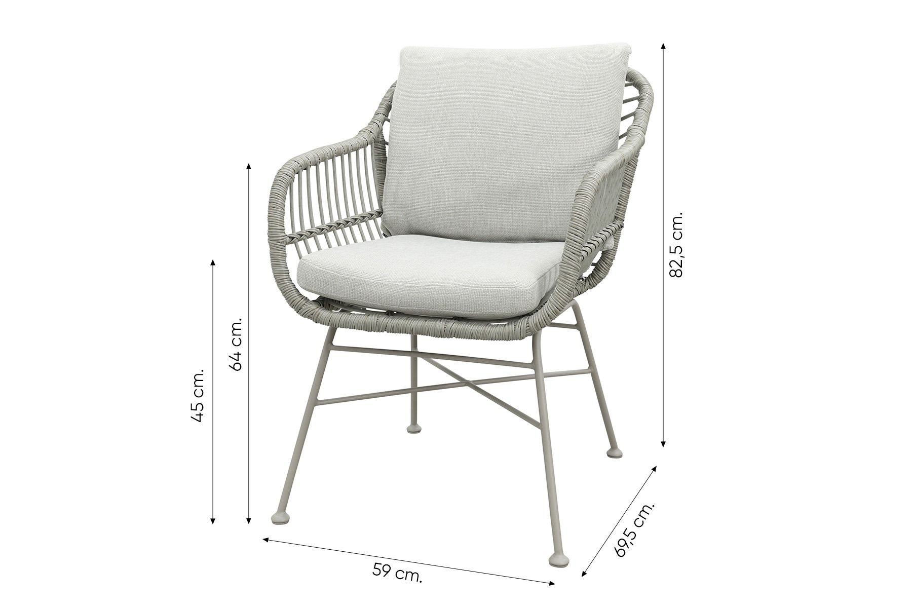 De Margriet tuinstoel heeft een gepoedercoat stalen frame dat stabiel en weersbestendig is. Het kunststof wicker vlechtwerk is duurzaam, kleurvast en bestand tegen regen en zon. De stoel wordt geleverd met een bijpassend zit- én rugkussen in een zachte, neutrale kleur. Zo zit je altijd comfortabel, of je nu uitgebreid eet of gewoon lekker buiten zit. De stoel is licht van gewicht en makkelijk te verplaatsen. Leuk detail: deze stoel is verkrijgbaar in meerdere kleuren, dus mix & match gerust voor een speels effect aan je tuintafel!