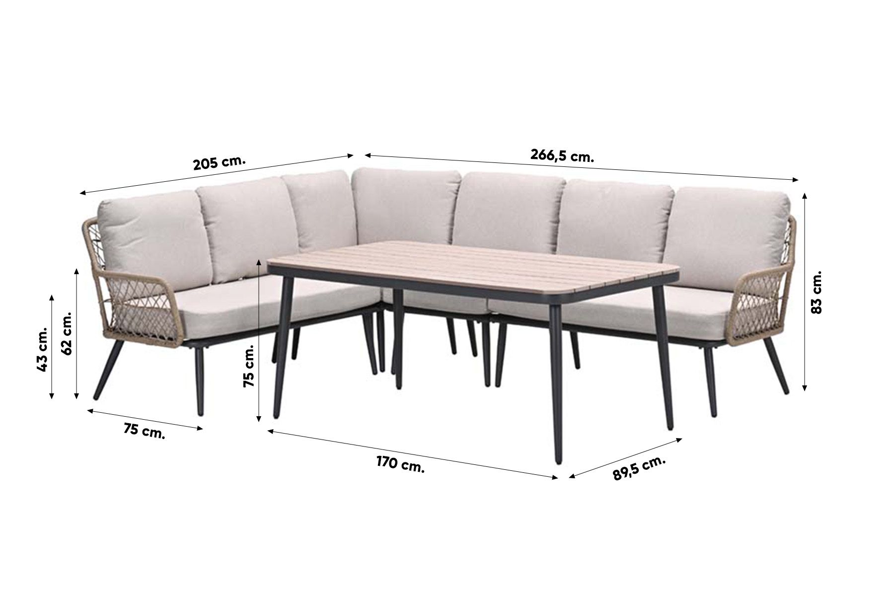 GI Allasio lounge-dining hoekset (5-delig) - Carbon black/Zand