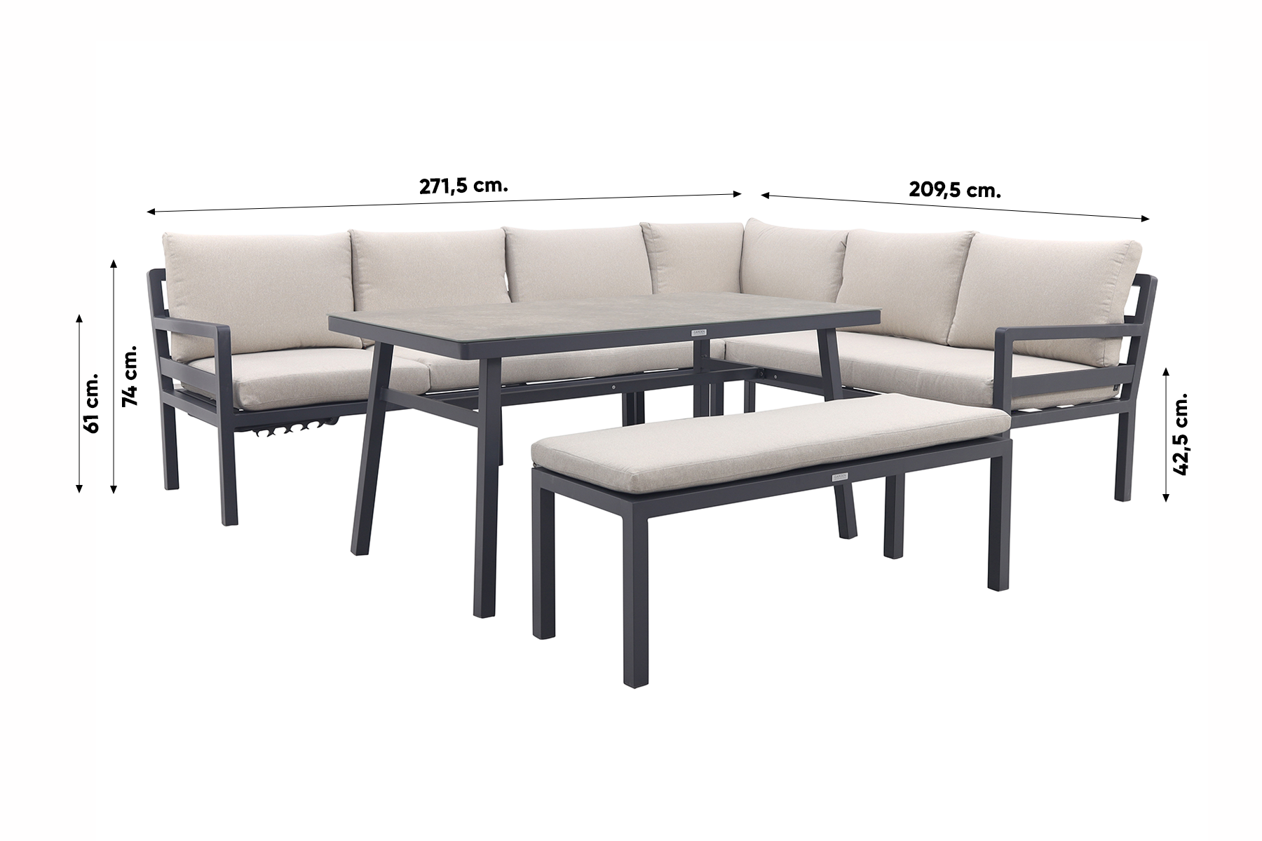 GI Corsica lounge-dining set rechts (4-delig) - Carbon black - Op=Op