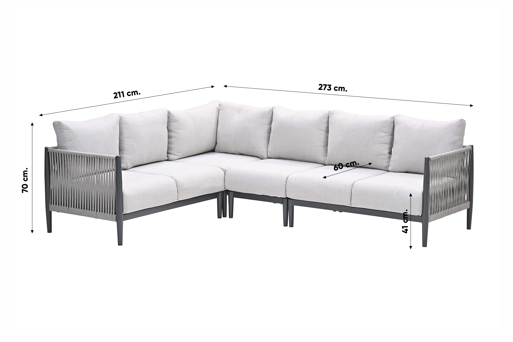 De loungeset bestaat uit 6 delen: