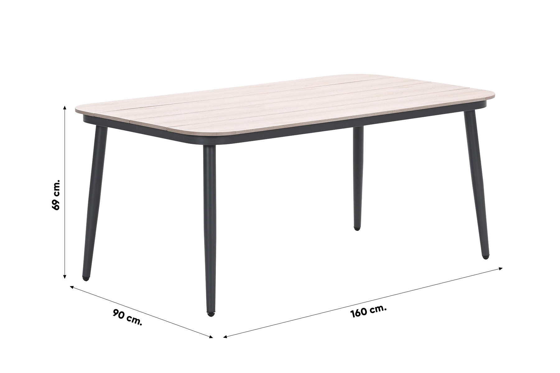 Met de GI Diamo lounge dining tafel geniet je van de looks van hout, maar profiteer je van de voordelen van kunststof. Het tafelblad is namelijk gemaakt van vironwood, een innovatief kunststof dat de uitstraling van teakhout uitstraalt. Het blad rust op een stevig aluminium frame. Dankzij de weerbestendigheid is de tafel perfect voor het hele jaar buiten gebruik.
