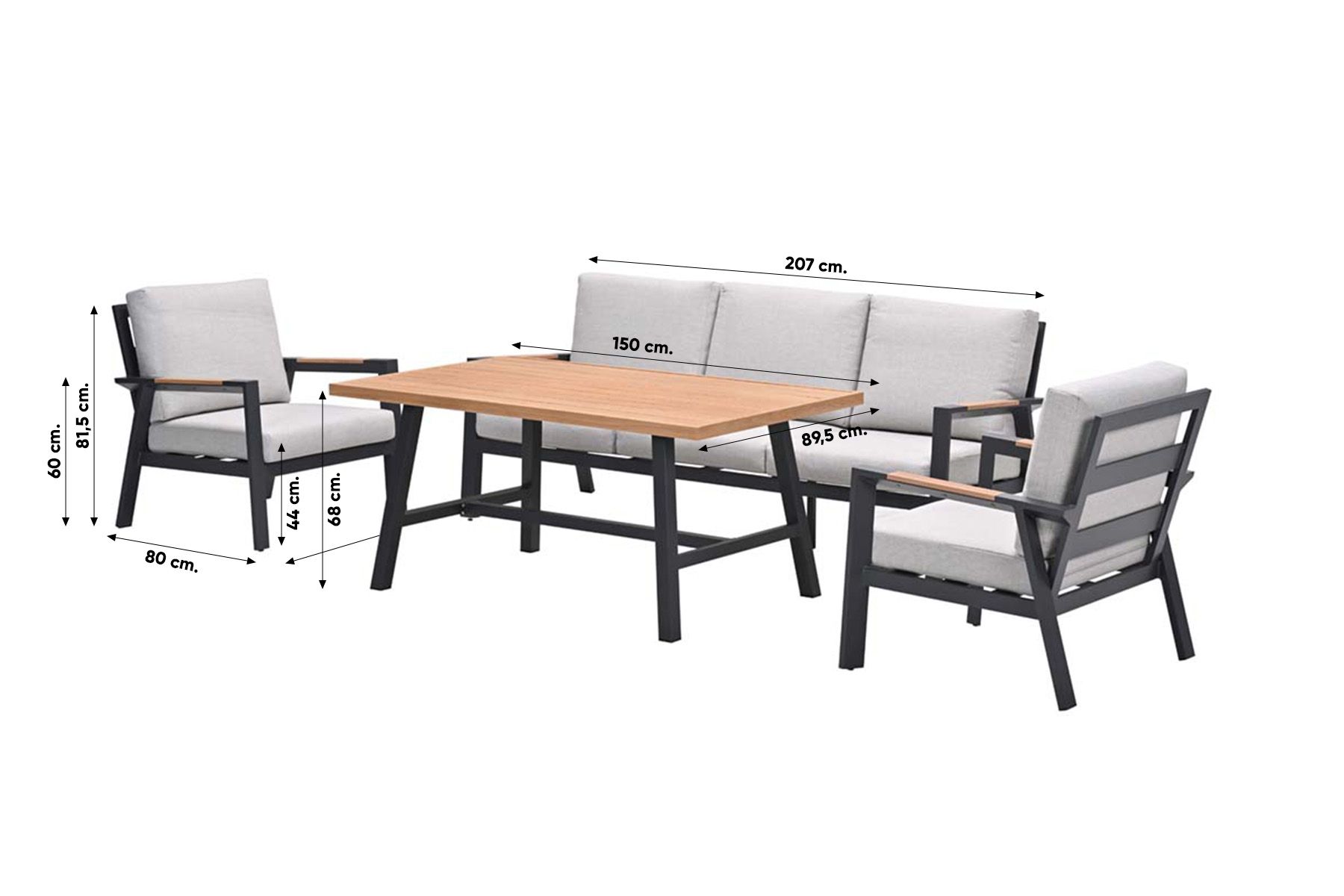 GI Elati lounge-dining set (4-delig) - Carbon Black/Zand