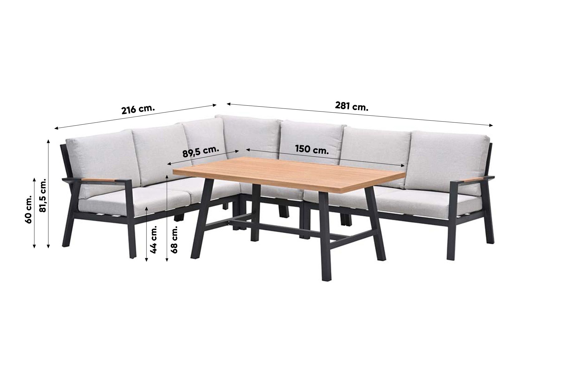 Eigenschappen GI Elati lounge-diningset aluminium (6-delig) - Carbon Black/Zand