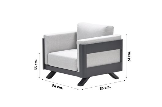 De GI Realdo loungestoel is volledig vervaardigd uit aluminium. Het frame wordt extra beschermd tegen de weersinvloeden door de speciale poedercoating in de kleur carbon black. Aluminium is een populair materiaal voor tuinmeubelen, omdat dit materiaal veel voordelen biedt. Zo is het materiaal stevig, weerbestendig, onderhoudsvriendelijk en heeft het een lange levensduur. De kussens van de Realdo fauteuil zijn gemaakt van waterafstotend polyester. Het advies is om de kussens op te bergen wanneer deze niet gebruikt worden.