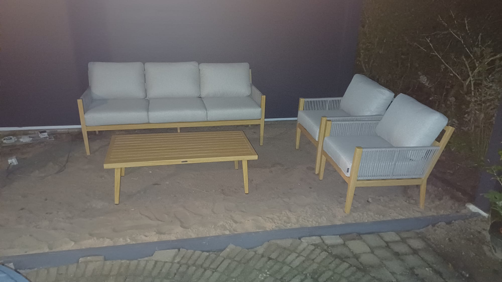 GI Sardinia stoel-bank loungeset (4-delig) - Aluminium Teak look/Zand OP=OP