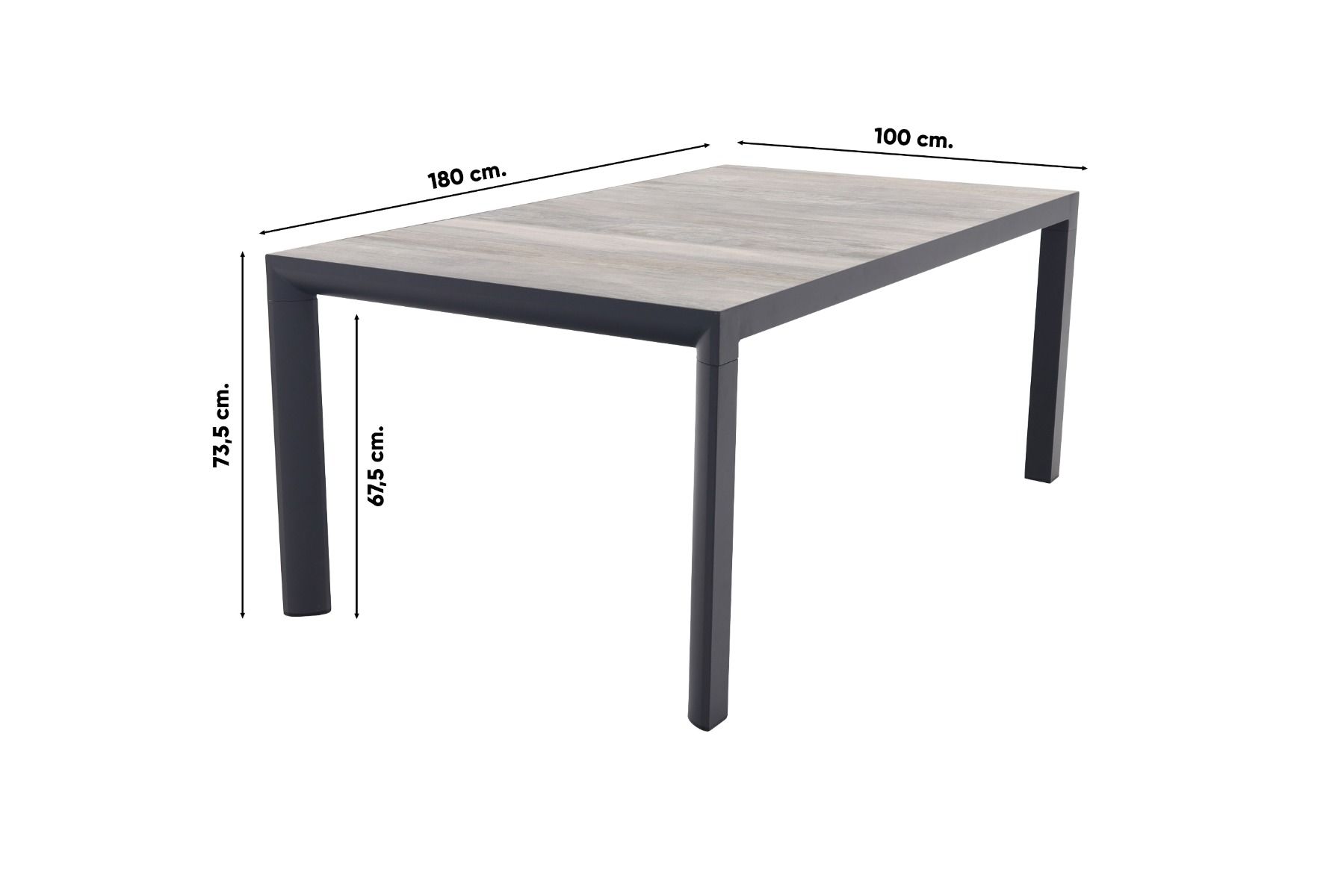 De Kings tuintafel is te herkennen aan de combinatie van keramiek en aluminium. Het lijkt alsof tafelblad gemaakt is van hout, maar niets is minder waar, het tafelblad is gemaakt van keramiek. De keramiek heeft een elegante houtlook en biedt ook veel praktische voordelen. Zo is het materiaal, duurzaam, volledig weerbestendig en heeft het een lange levensduur. Het blad rust op een antracietkleurig aluminium frame, dat bekendstaat om zijn stevigheid en onderhoudsgemak. Aluminium is weerbestendig, roest niet en verkleurt niet, waardoor het ideaal is voor buitengebruik. Bovendien is de tafel eenvoudig te onderhouden en kun je deze het hele jaar door buiten laten staan.