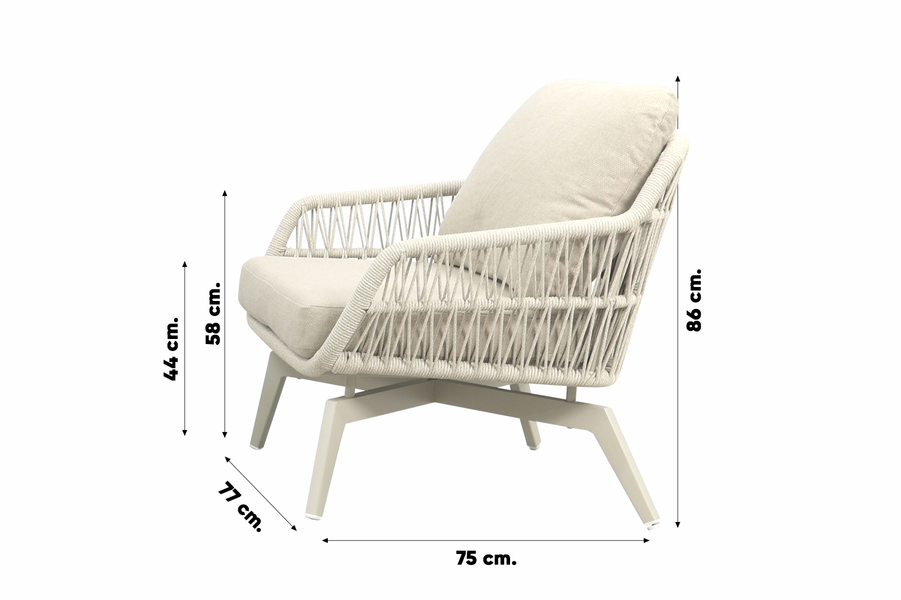 Rope (touw) is een prachtig zacht materiaal met een hippe uitstraling en weerbestendige eigenschappen. Het materiaal vergt weinig onderhoud, mocht je het rope schoon willen maken dan adviseren wij om de Wicker en textileen cleaner van 4-Seasons te gebruiken.