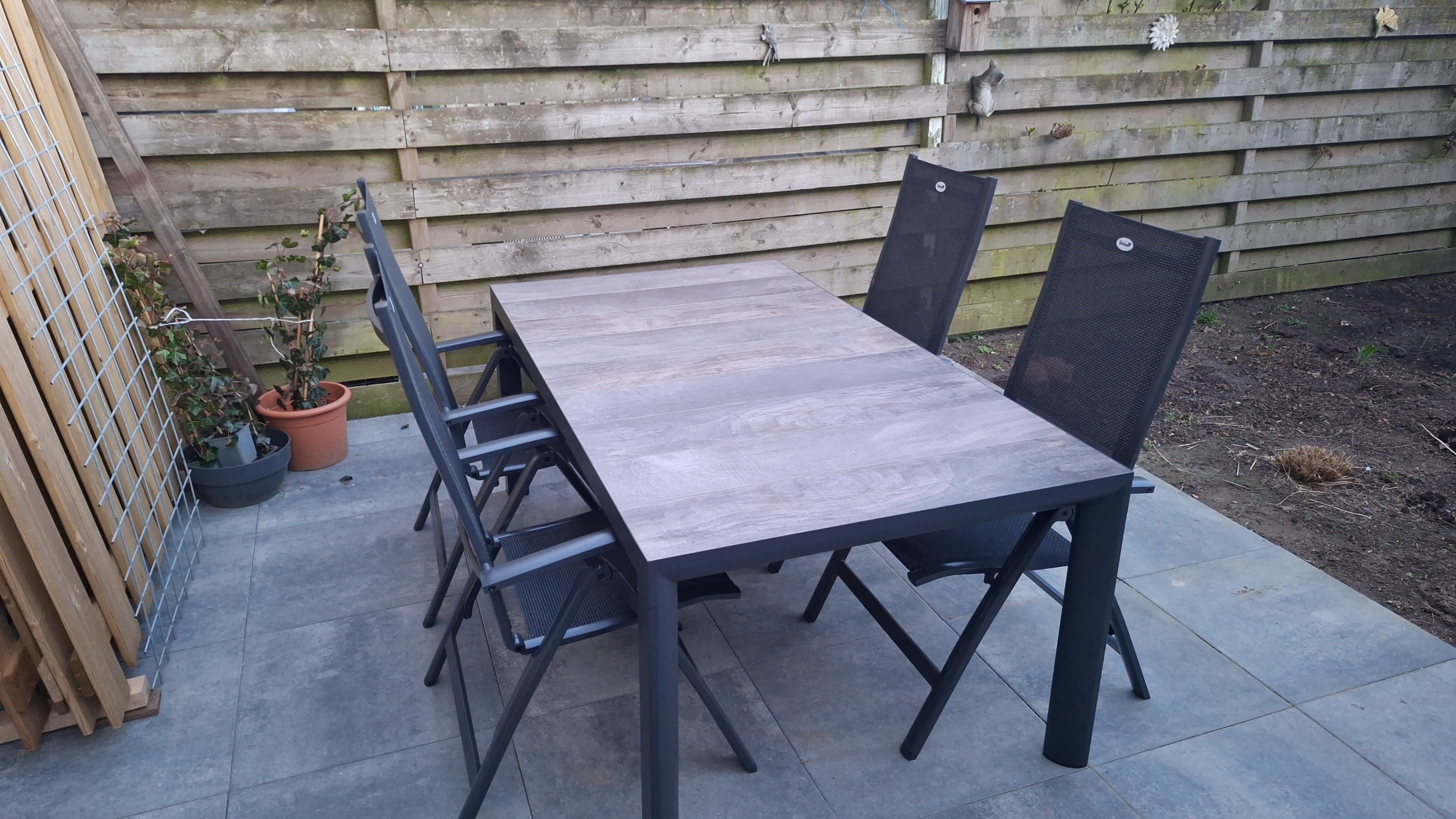 5 / 5Prachtige setMooie uitstraling en stevig design. Zware tafel. Stoelen makkelijk verstelbaar.0 lezer(s) vonden deze review behulpzaamVind je deze review behulpzaam?