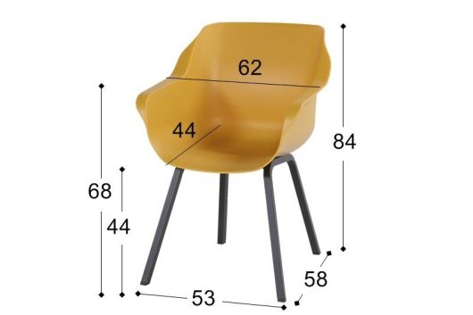 De Hartman Sophie is een trendy tuinstoel met een stijlvolle uitstraling. De kuip van de Hartman Sophie is vervaardigd uit hoogwaardige kwaliteit kunststof en is voorzien van brede armleggers. Dankzij de "Curved Technology", heeft de stoel een ergonomische vormgeving. Hierdoor krijgt je rug maximale ondersteuning en ervaar je een optimaal zitcomfort. Achterin de zitkuip zijn 2 gaatjes gemaakt zodat er geen water in kan blijven staan. De poten van de stoel hebben een vierkante vormgeving, wat kenmerkend is voor de "Sophie Element". De poten zijn gemaakt van aluminium en behandeld met een poedercoating. Deze coating zorgt ervoor dat het frame kras- en stootvast is. Zowel de zitkuip als de poten zijn bestand tegen uiteenlopende weersinvloeden. Hierdoor kan de Hartman Sophie het hele jaar door buiten blijven staan.