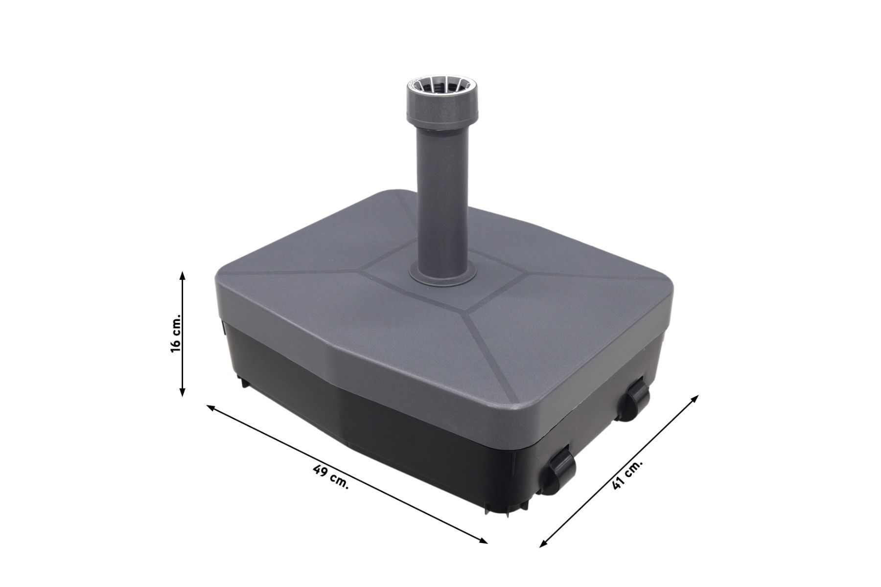 De vulbare eigenschap van deze parasolvoet biedt een ongekende flexibiliteit. Met een vulbaar gewicht tot 45 kg kun je de voet aanpassen aan de specifieke omstandigheden en de grootte van je parasol. Of je nu een lichte parasol hebt voor een zomers briesje of een stevige parasol voor bescherming tegen een sterke wind, deze parasolvoet kan zich aanpassen aan jouw wensen. Dankzij de twee handige wielen is deze parasolvoet gemakkelijk te verplaatsen! Bovendien is het materiaal gemakkelijk te reinigen en te onderhouden, zodat je jarenlang plezier hebt van je parasolvoet.