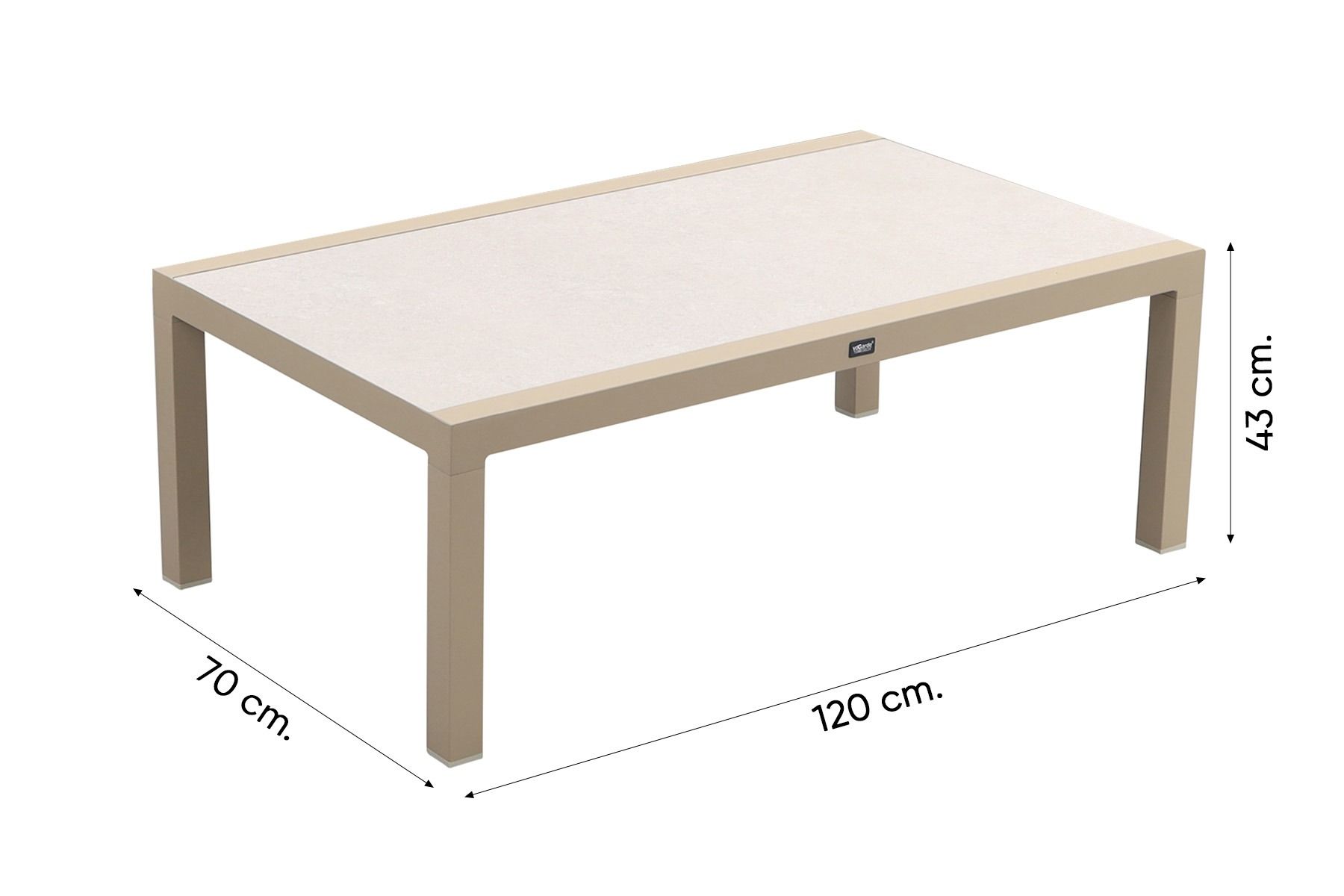 1x Atlanta aluminium/keramiek loungetafel 120x70 cm. - Latte