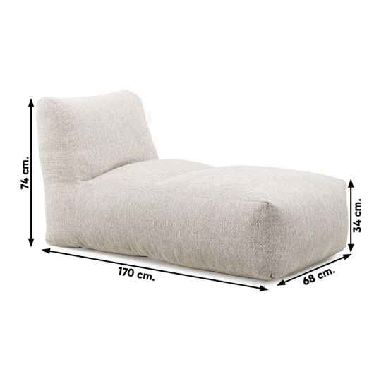 Ontdek de ultieme luxe van de handgemaakte Laui Lounge™ Longchair met een prachtige Boho uitstraling. Deze veelzijdige Boho collectie kan zowel binnen als buiten worden. ankzij de 100% waterafstotende outdoor stof kun je zorgeloos genieten, terwijl de vulling van gerecyclede EPS-korrels zorgt voor ultiem comfort. Elk exemplaar is met liefde met de hand gemaakt in Nederland. Met afmetingen van 68cm x 170cm x 74cm x 34cm (breedte x diepte x hoogte x zithoogte) biedt deze longchair de perfecte plek om te ontspannen en te loungen in stijl.