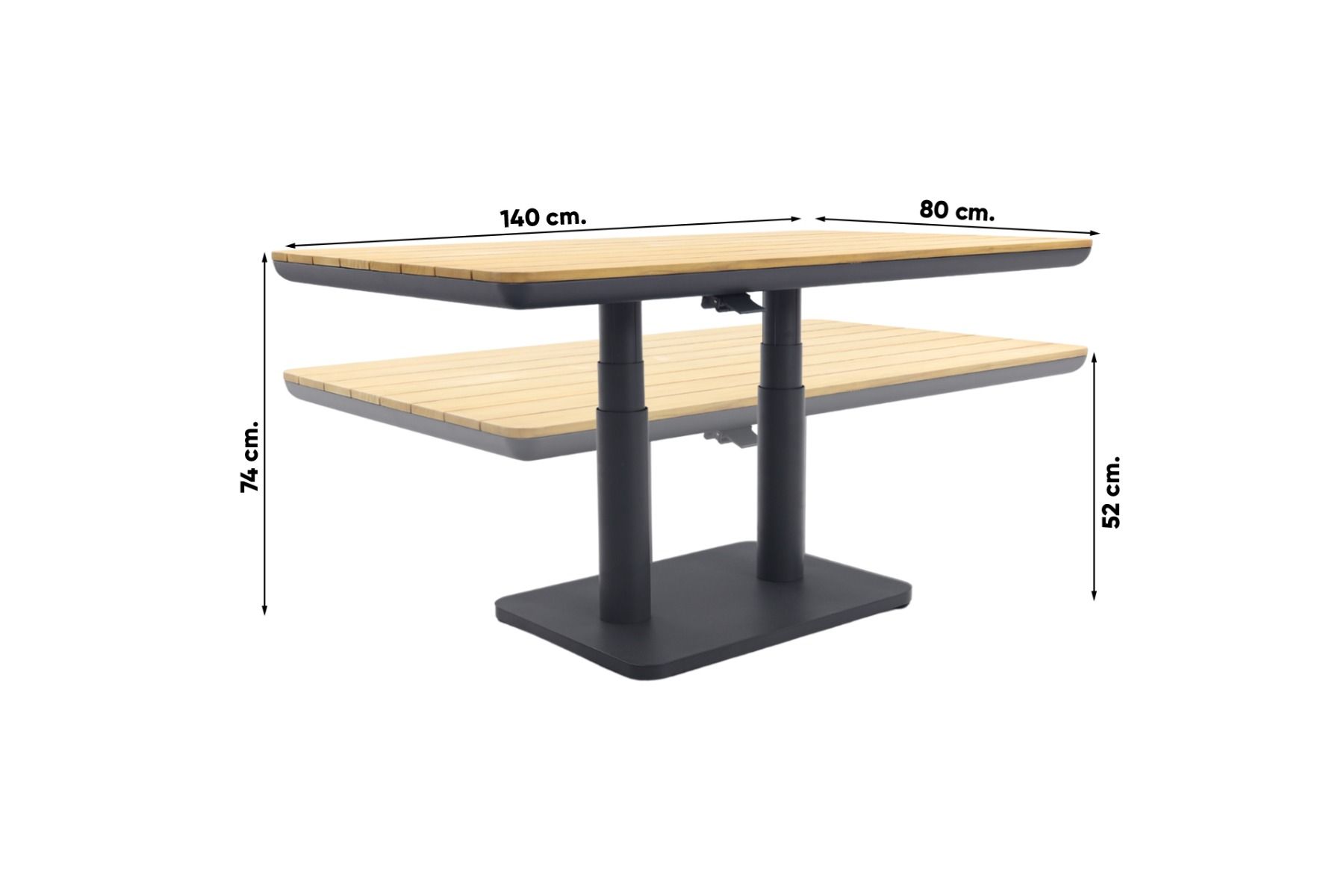 Medina up&down verstelbare tuintafel 140x80 cm. - Royal Grey/Teak