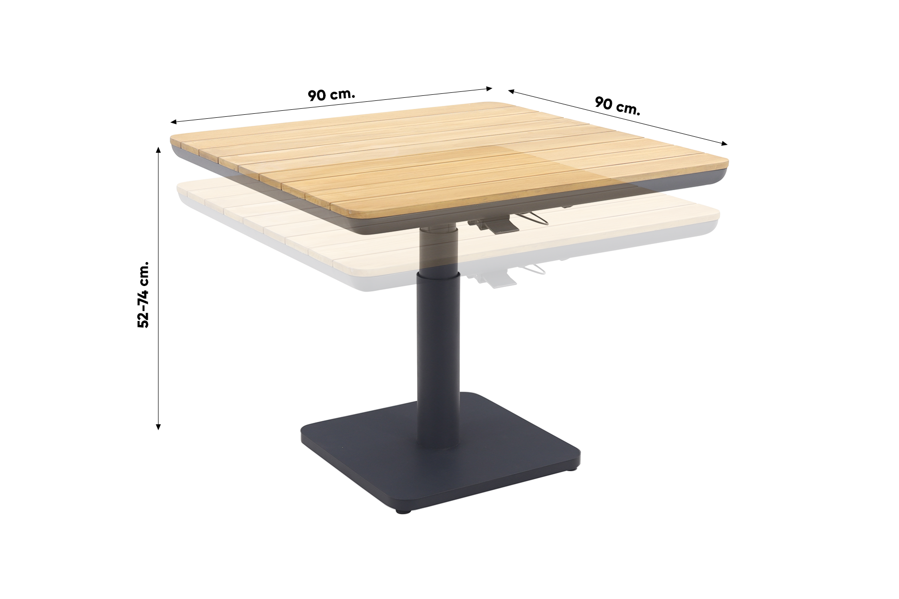 Medina up&down verstelbare tuintafel 90x90 cm. - Royal Grey/Teak