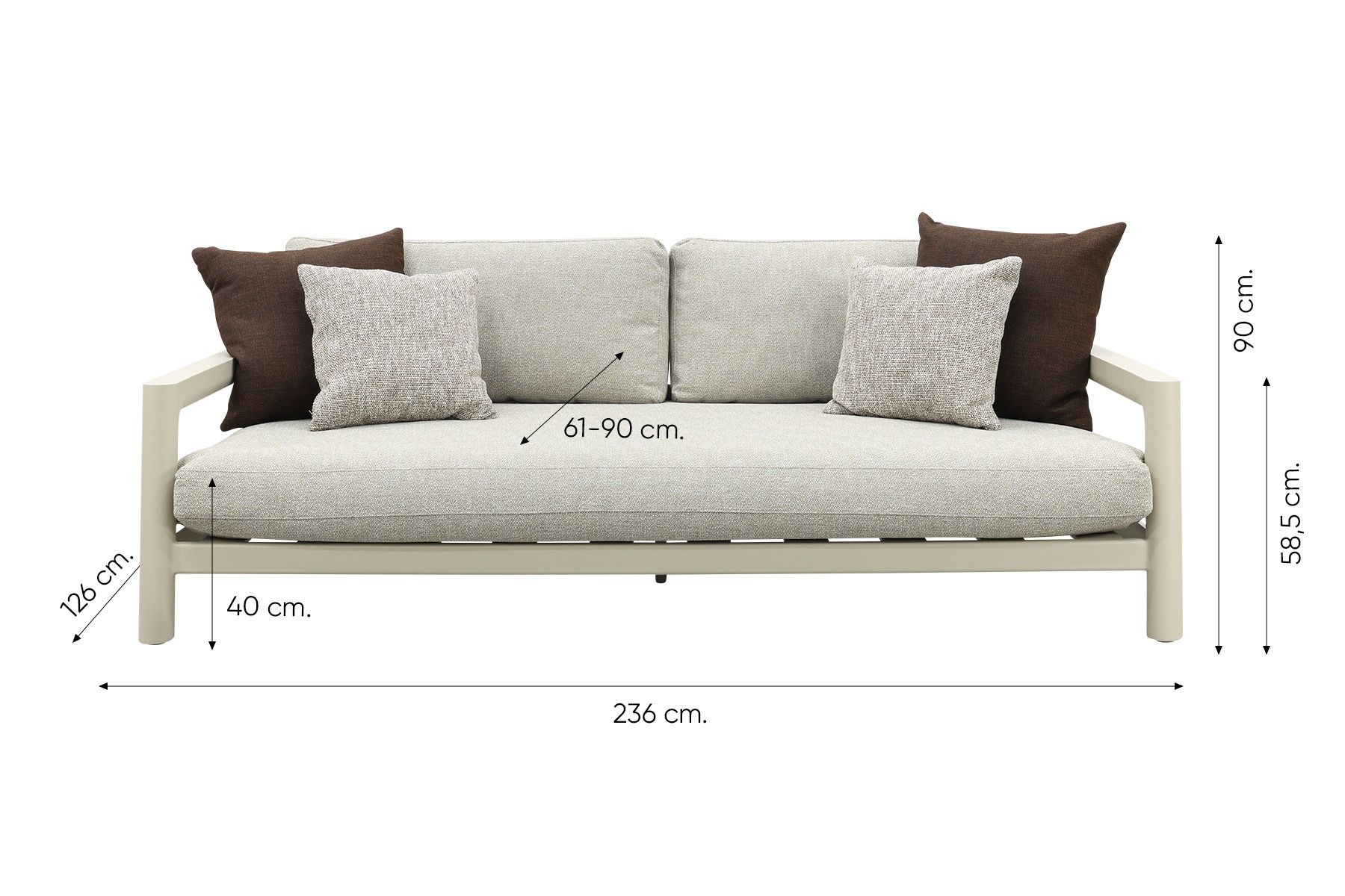 Moretti 3-zits loungebank met verstelbare zitdiepte - Mokka