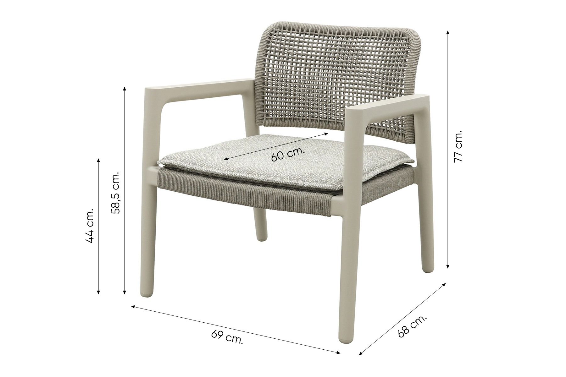 - Rope rugleuning voor luchtige uitstraling en goede ondersteuning