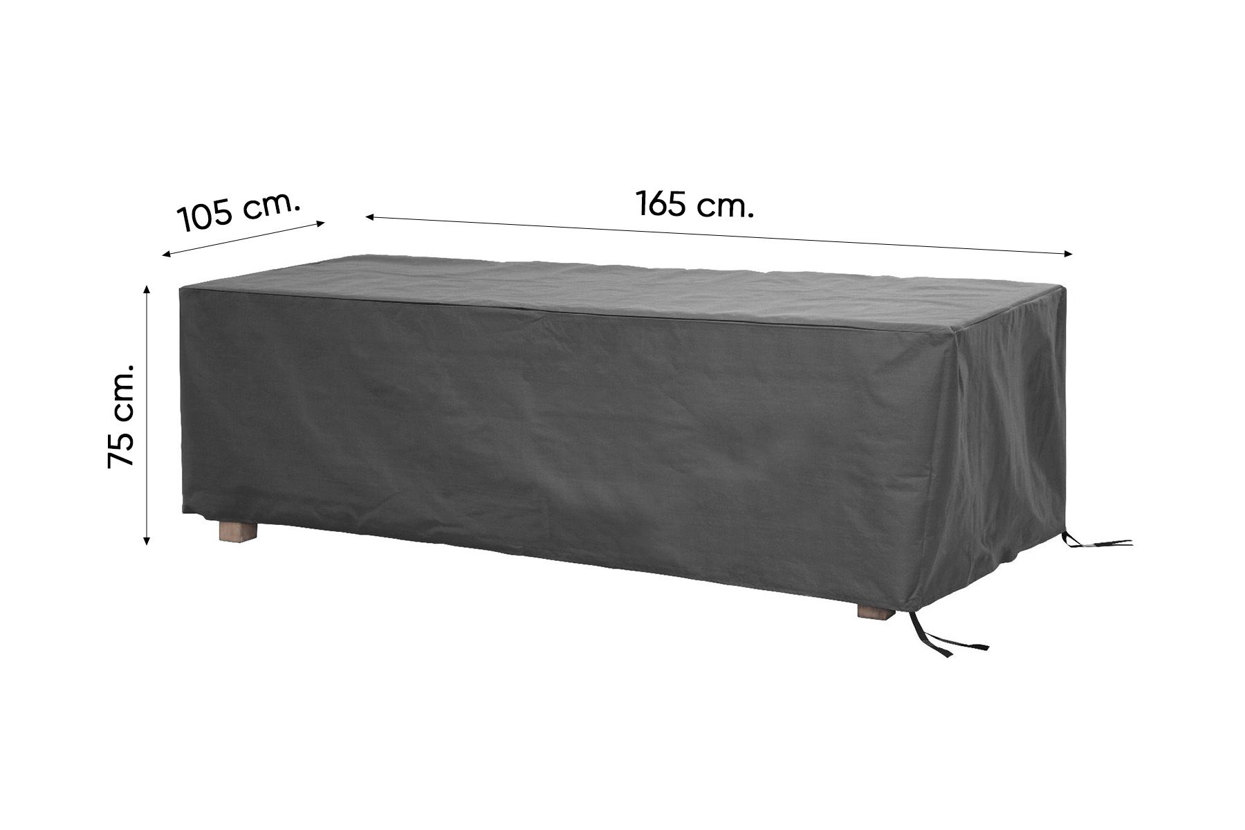De Outdoor Covers tuintafelhoes 165 cm met een luxueuze textiel uitstraling is de perfecte hoes voor uw tuintafel. De tuintafelhoes is 165 cm lang, 105 cm breed en 75 cm hoog. De hoes is gemaakt van recyclebaar polyethyleen weefsel, voorzien van een waterproof coating. Hierdoor bied de hoes de juiste bescherming tegen alle weersinvloeden. Het materiaal van de tuintafelhoes is een geverfde vezel, hierdoor blijft de kleur optimaal behouden onder invloed van UV. Aan de onderkant van de hoes zit op alle punten klittenband, zo kan de hoes goed bevestigd worden aan uw tuintafel.