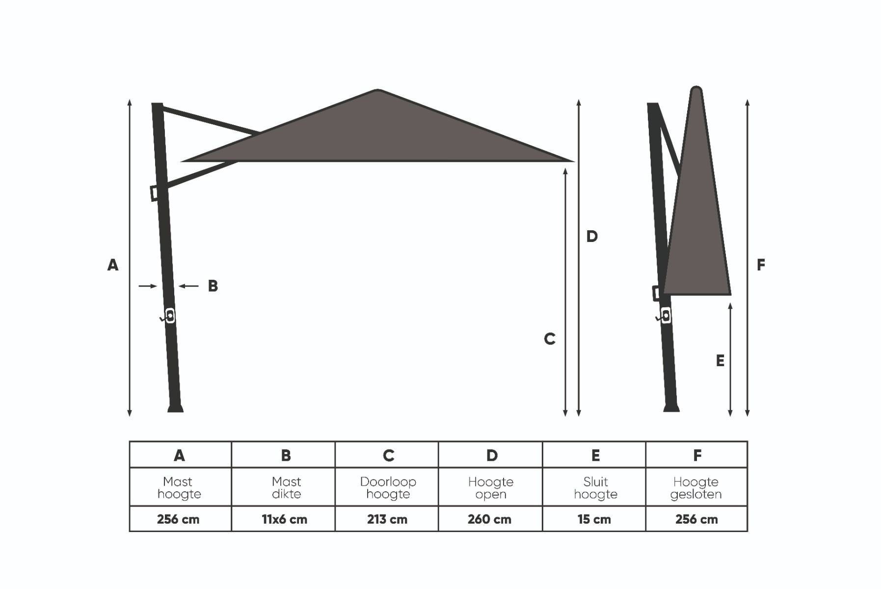 Hartafstanden tbv montage parasol