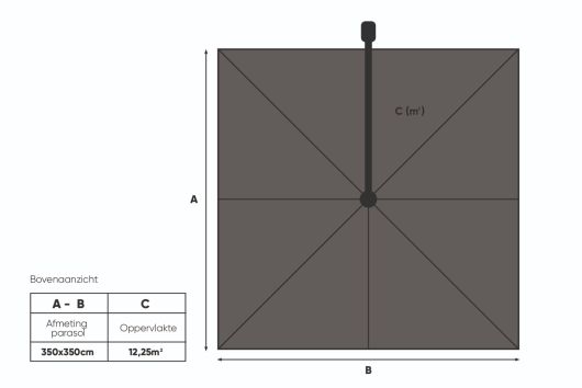 Het doek van een parasol is het beste schoon te maken met lauw water met zachte zeep, gebruik hiervoor een borstel. Wij adviseren u om uw parasol te beschermen met een parasolhoes. Door gebruik van een parasolhoes beschermd u, uw parasol tegen vuil en verkleuring.