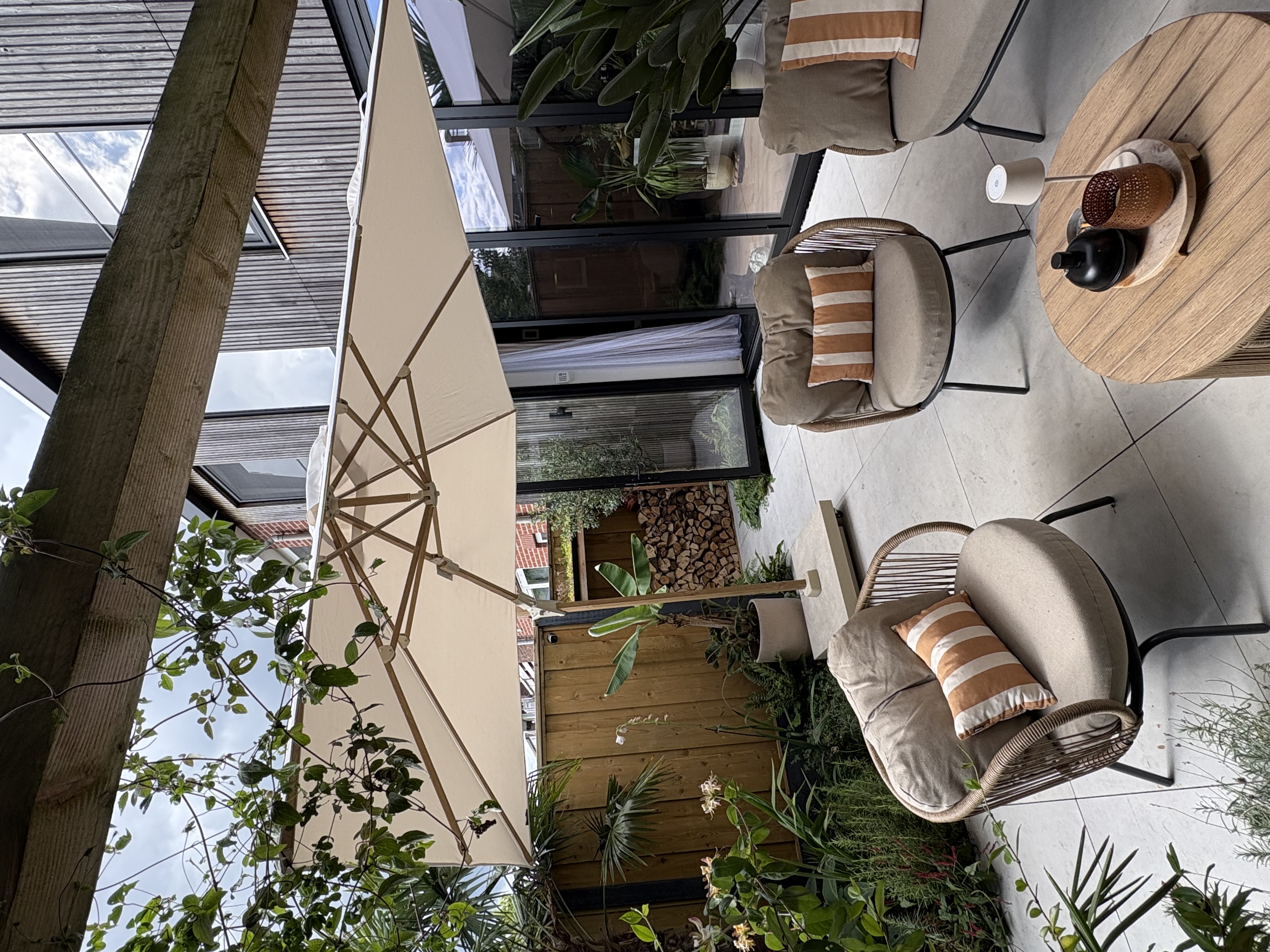 5 / 5Erg blij met deze chique parasol en toebehorenAfgelopen week heb ik deze parasol incl. Accessoires mogen ontvangen. Eind zomer toch nog een mooie toevoeging aan de tuin. De parasol is zeer degelijk en de voetsteun robuust. De bediening is zeer soepel en eenvoudig te bedienen. Hopelijk mag ik er vele jaren van genieten! Overigens prima klantenservice en communicatie.1 lezer(s) vonden deze review behulpzaamVind je deze review behulpzaam?