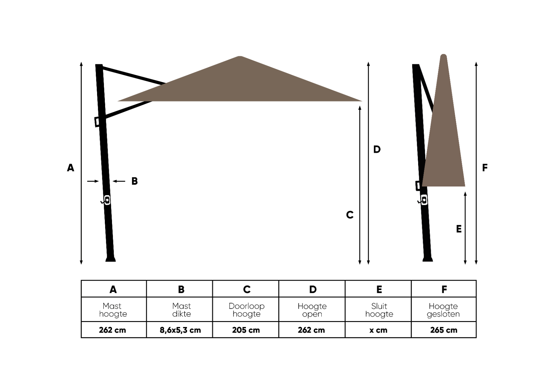 Eigenschappen Platinum Challenger Zweefparasol T2 Premium Glow 3x3 m. - Havana Taupe