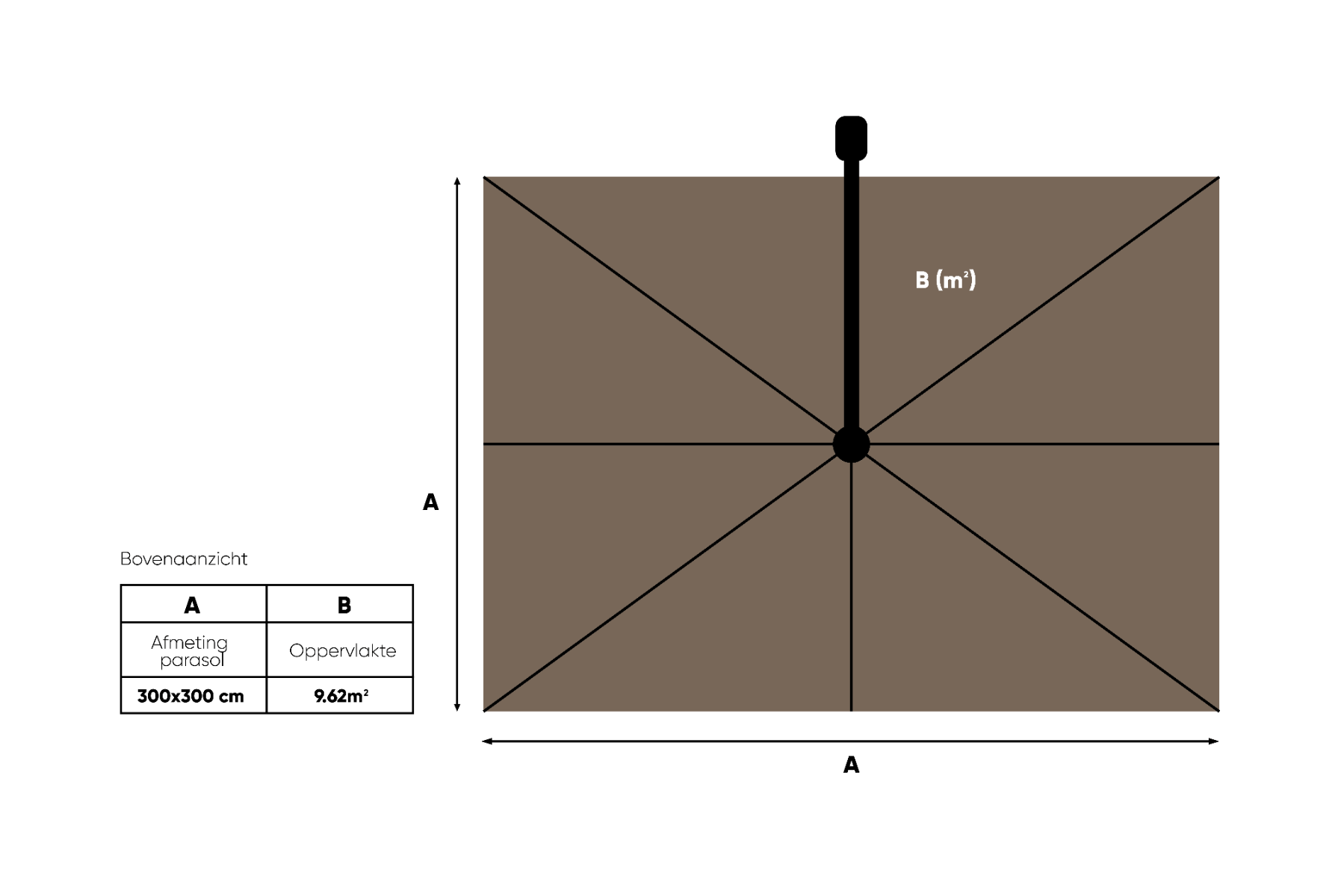 Platinum Challenger Zweefparasol T2 Premium Glow 3x3 m. - Havana Taupe - Met verlichting